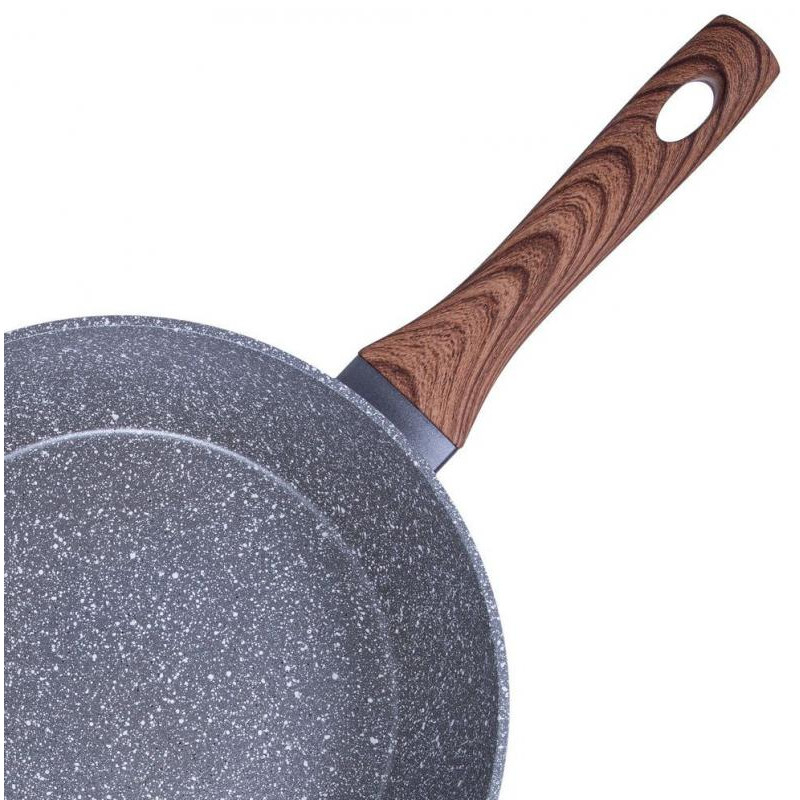 28х7.5см, ков.алюм, антиприг.гранитное покрытие, прорезиненная ручка, дно сковороды доп. усилено антидеформационным диском, подходит для всех типов плит, включая индукцию