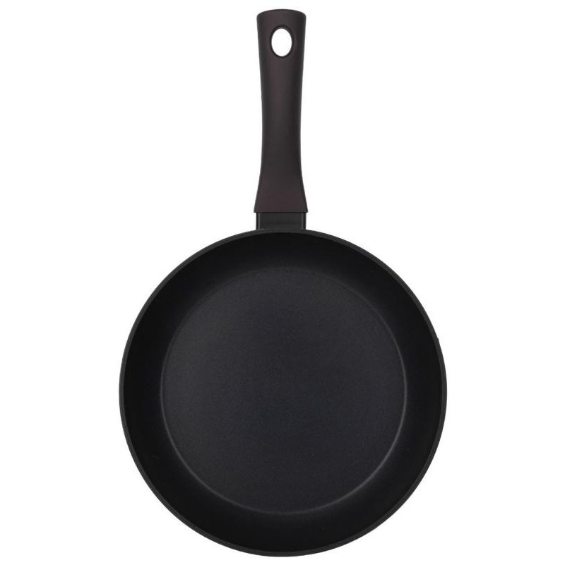 22см, высота 4.6см, алюминий (дно 3.3мм), трехслойное антипригарное покрытие, толщина стенок 3.0мм, ручка бакелит с soft-touch покрытием, подходит для всех видов плит (включая индукцию), рекомендуется ручная мойка