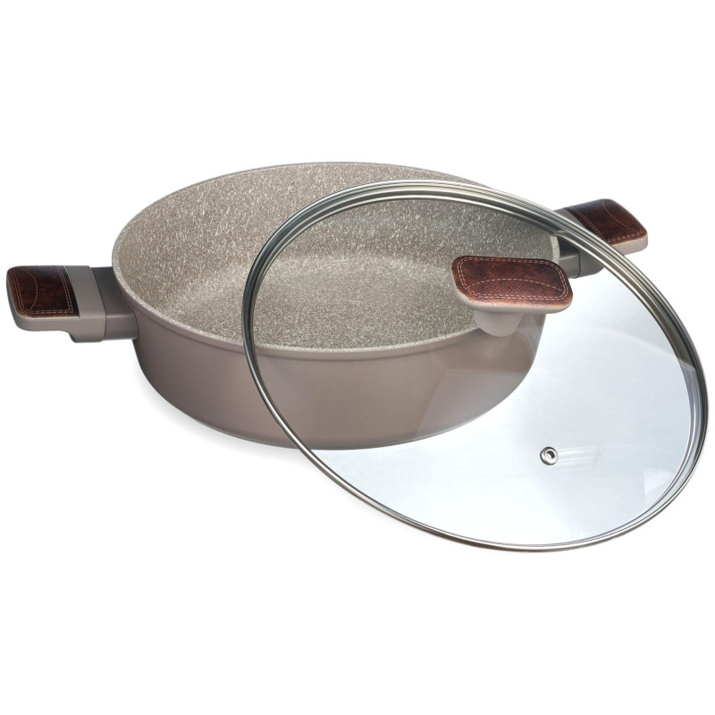 Сотейник со стекл. крышкой и антипригарным покрытием pfluon marble, 26*7,5 см AGNESS 902-115