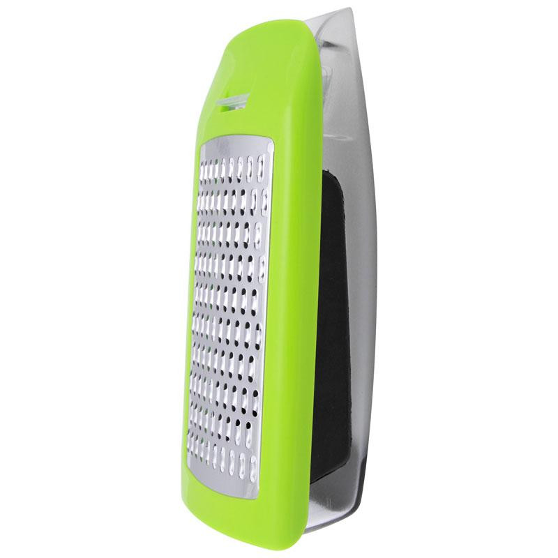 Терка с контейнером и крышкой, сталь/пластик, 16.5х8.5см, контейнер 0.6л, цвет корпуса терки-зеленый