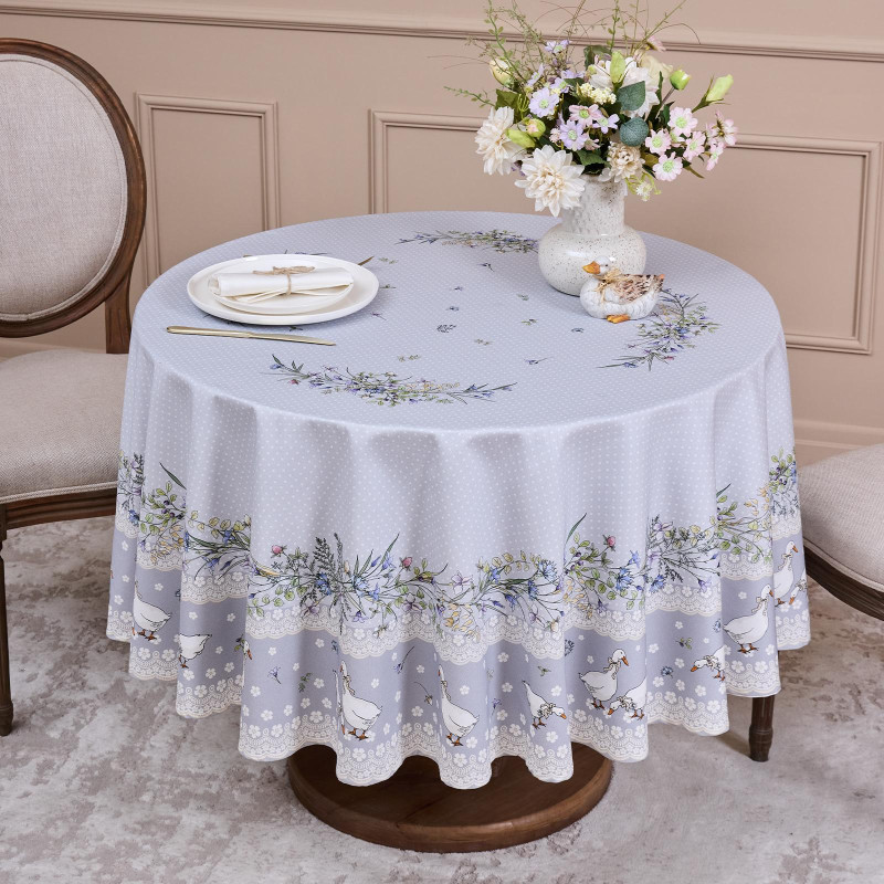 Скатерть круглая "ГУСИ ЛЕГАРД" диаметр=180 см., серый, 100% хлопок, твил, с пропиткой LEFARD 850-710-22