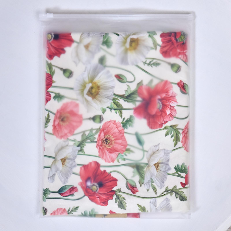 Декор: насыщенный принт с красными и белыми маками, зелёными стеблями и жёлтой каймой по нижнему краю. Композиция смотрится ярко, празднично и вносит в интерьер ощущение свежести. Цифровая печать гарантирует стойкость цветов даже после многократных стирок.