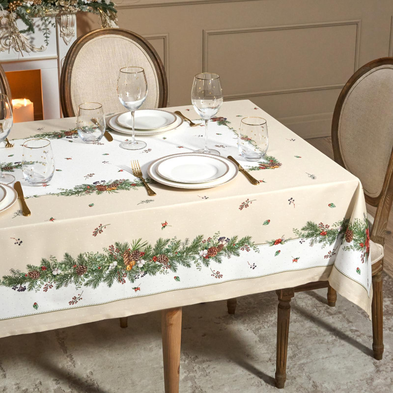 Новогодняя скатерть Lefard из коллекции "Celebration" — идеальный акцент для сервировки большого праздничного стола. Узор с рождественским венком, еловыми ветками, ягодами и шишками наполняет интерьер теплом и праздничным настроением. Такой венок издавна считался оберегом дома и символом гостеприимства. Мы делимся с вами этой энергией — чтобы в доме царили уют, свет и радость.