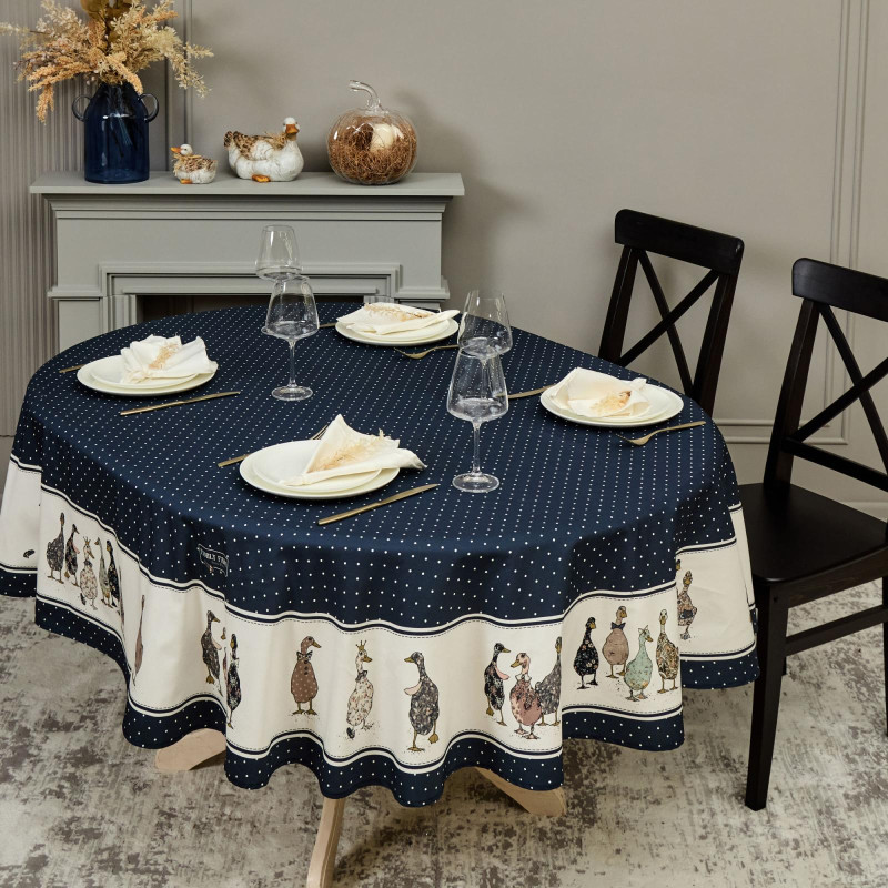 Скатерть овальная "FAMILY FARM" 190х220см ,синий, 100% хлопок, твил, с пропиткой LEFARD 850-742-24