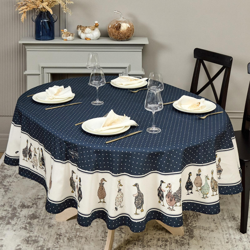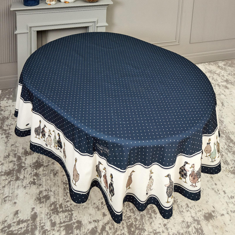 Скатерть овальная "FAMILY FARM" 160х220 см ,синий, 100% хлопок, твил, с пропиткой LEFARD 850-742-26