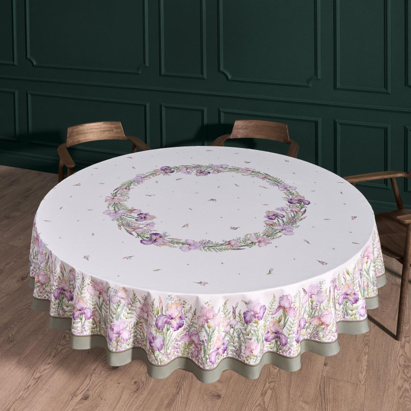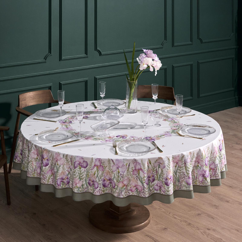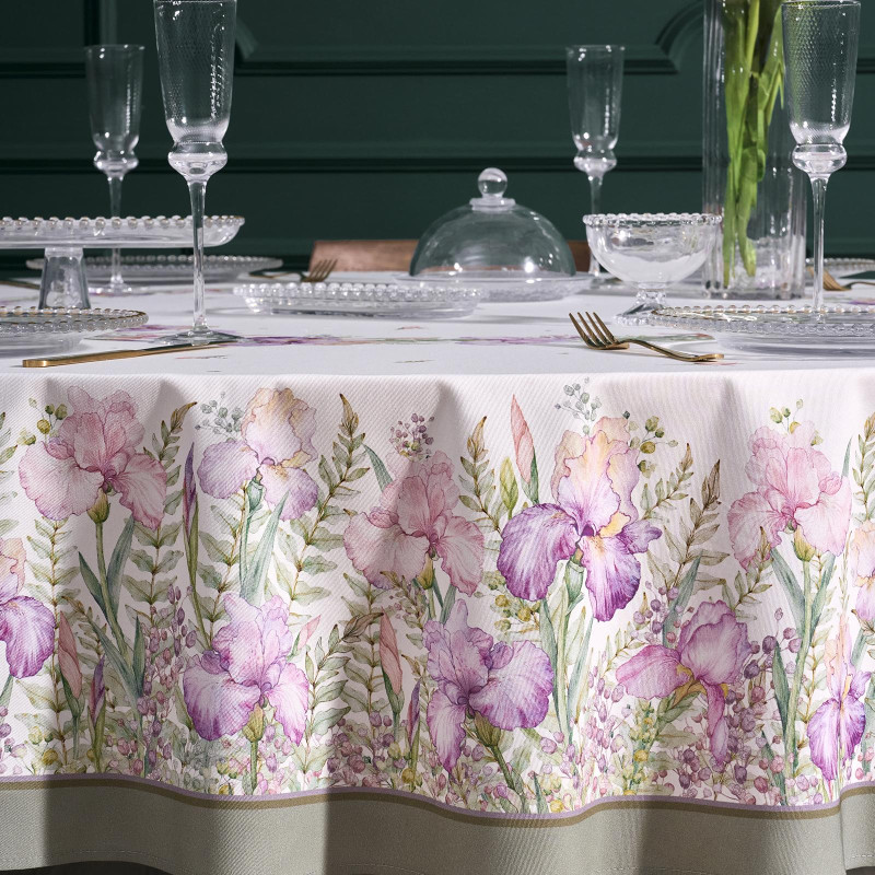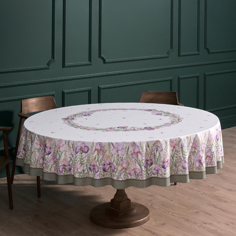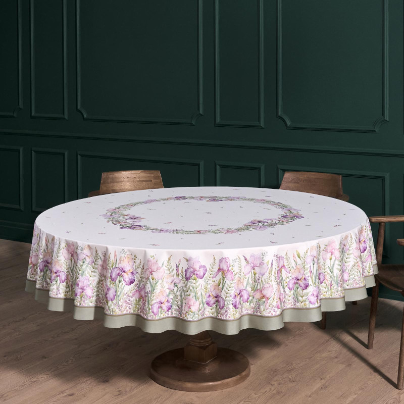 Скатерть круглая "ИРИСЫ" ,d220см, 100% хлопок,твил c пропиткой, белый LEFARD 850-743-25
