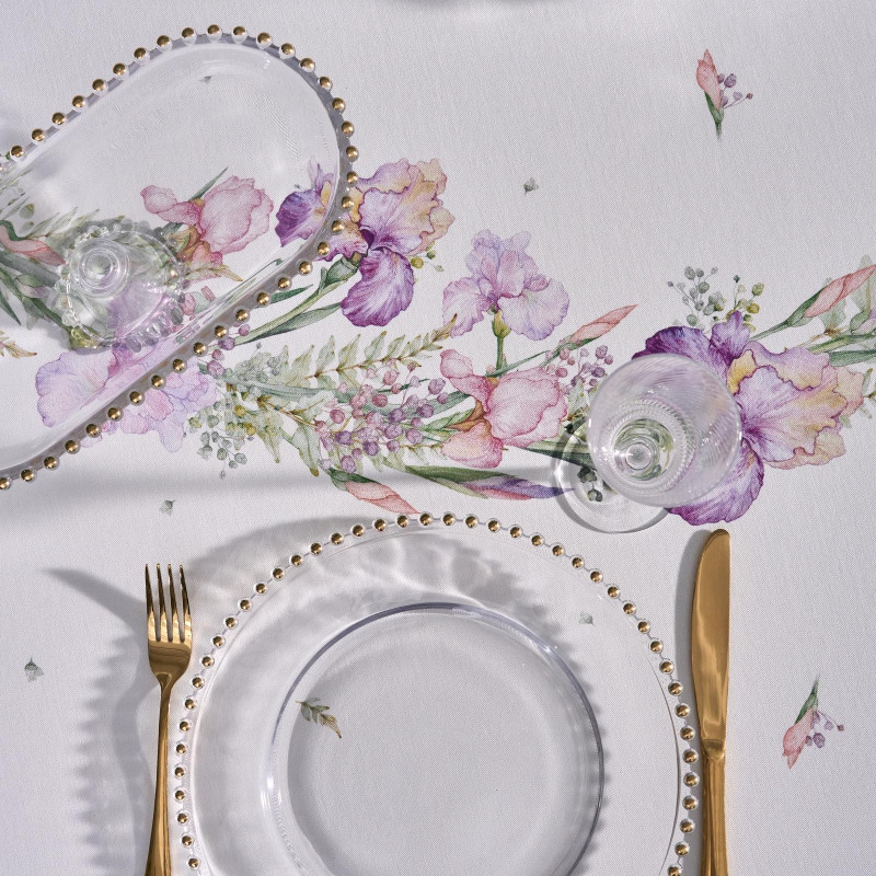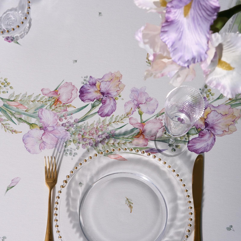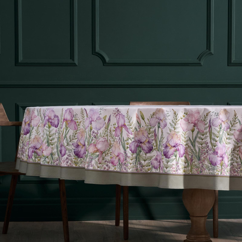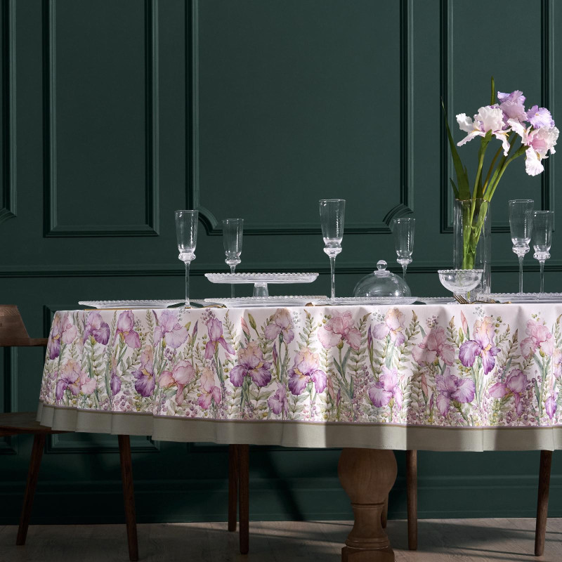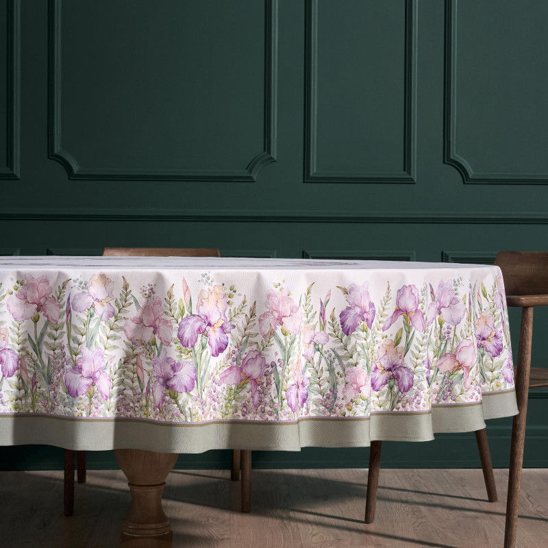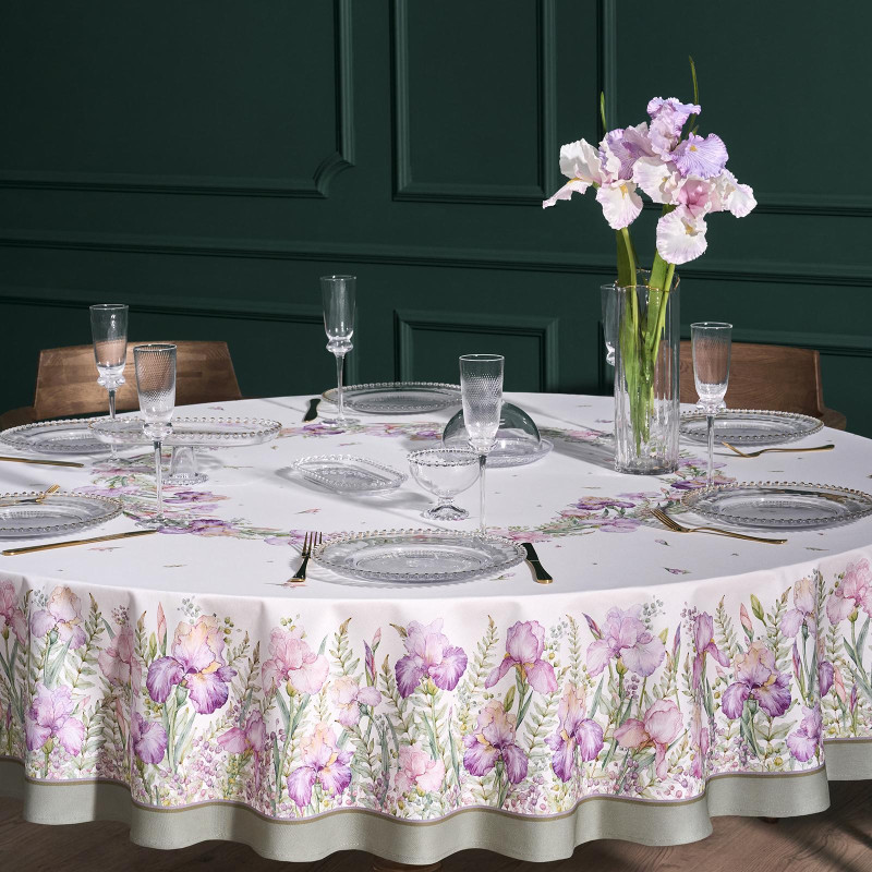 Скатерть круглая "ИРИСЫ" ,d220см, 100% хлопок,твил c пропиткой, белый LEFARD 850-743-25