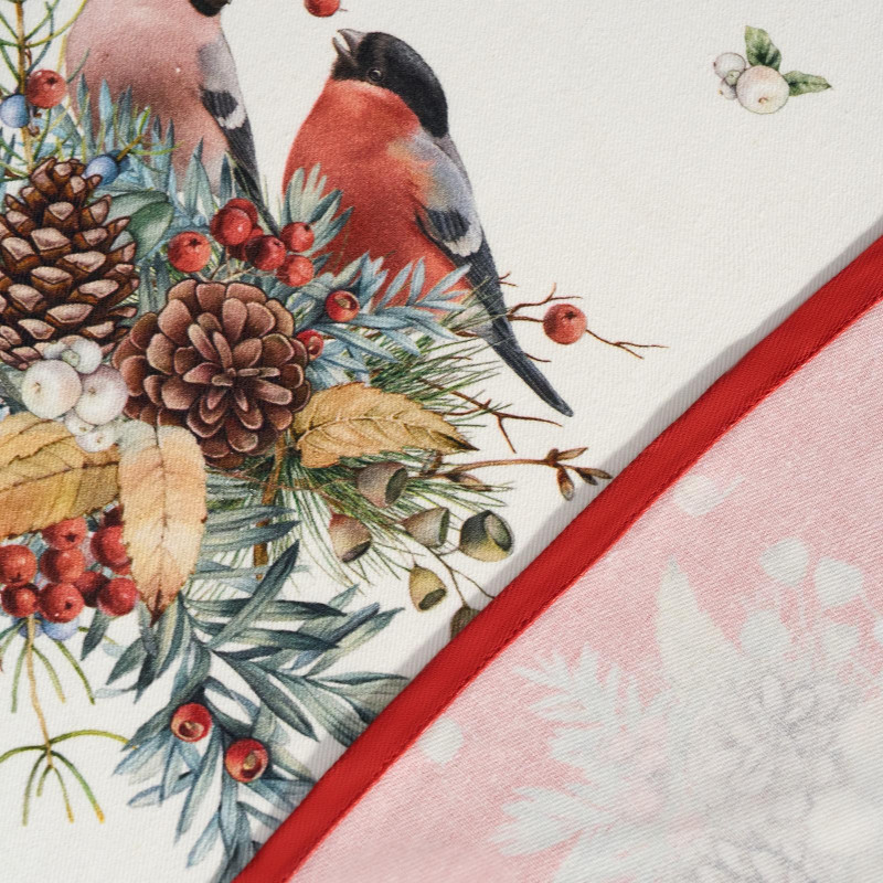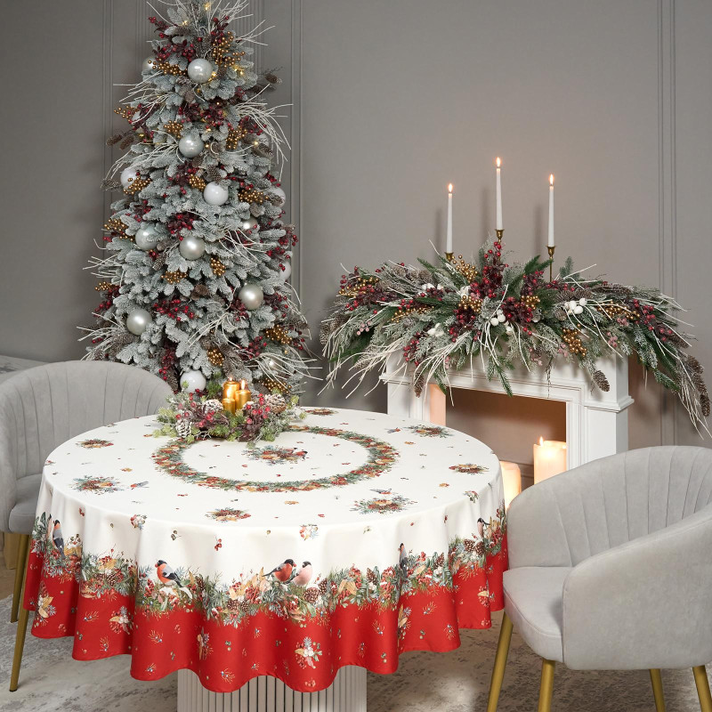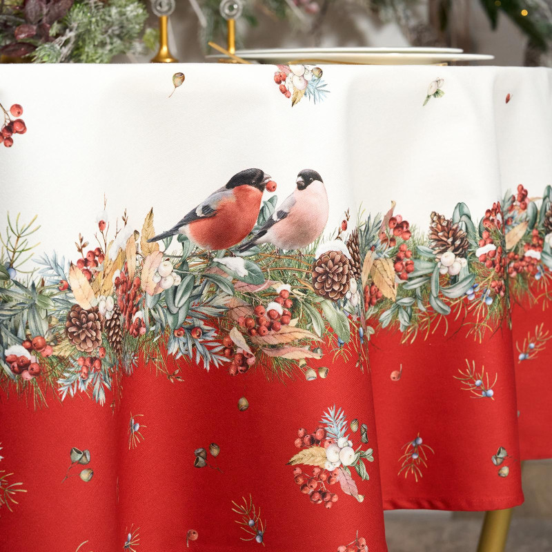 Скатерть круглая " МОРОЗКО.СНЕГИРИ" 190см , красный, 100% хлопок, твил, с пропиткой LEFARD 850-745-22