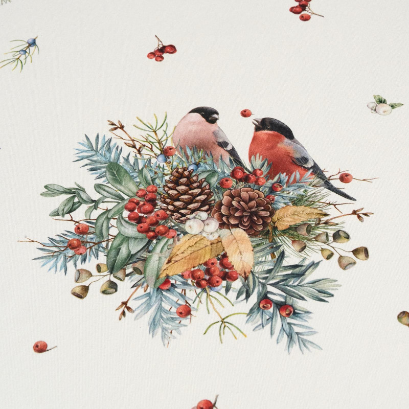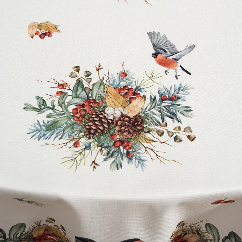 Скатерть создана по эксклюзивному дизайну для бренда Lefard и гармонирует с одноимённой посудой из коллекции Морозко. Снегири. Это текстиль высокого класса, который подойдёт как для домашнего использования, так и в качестве подарка.