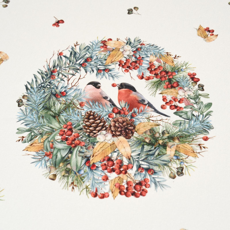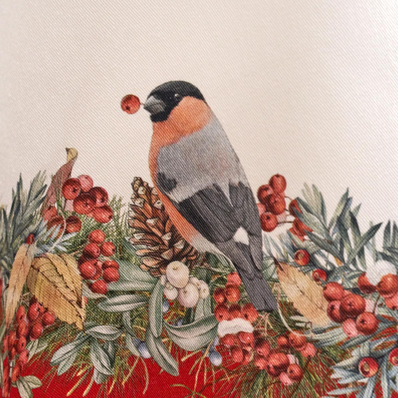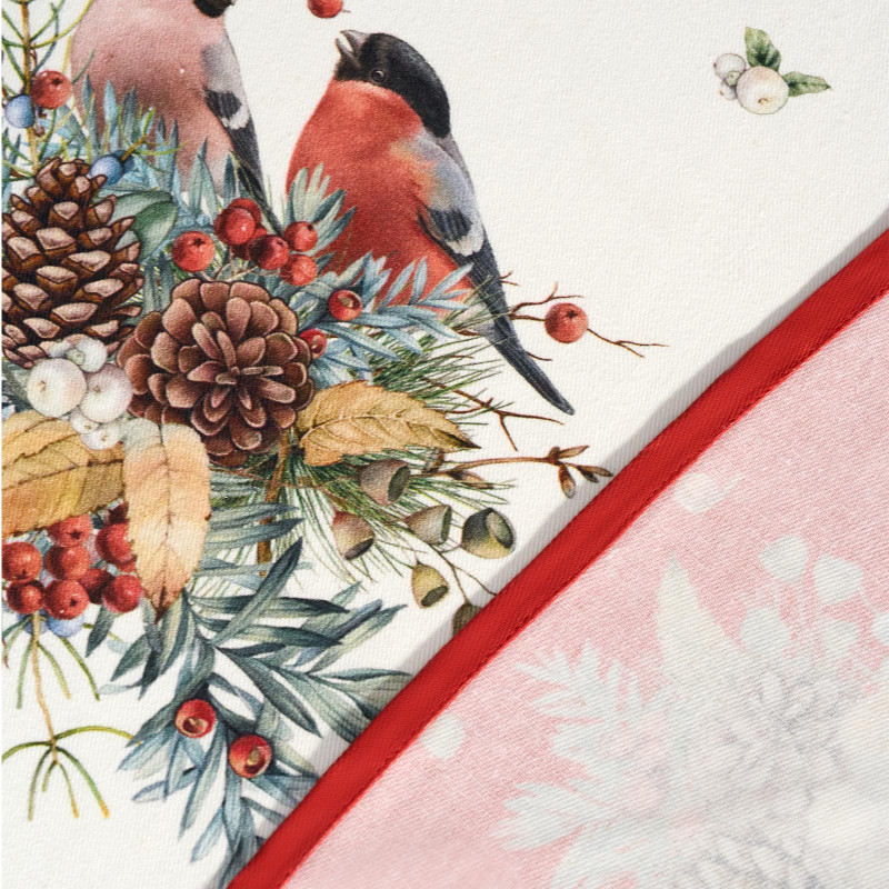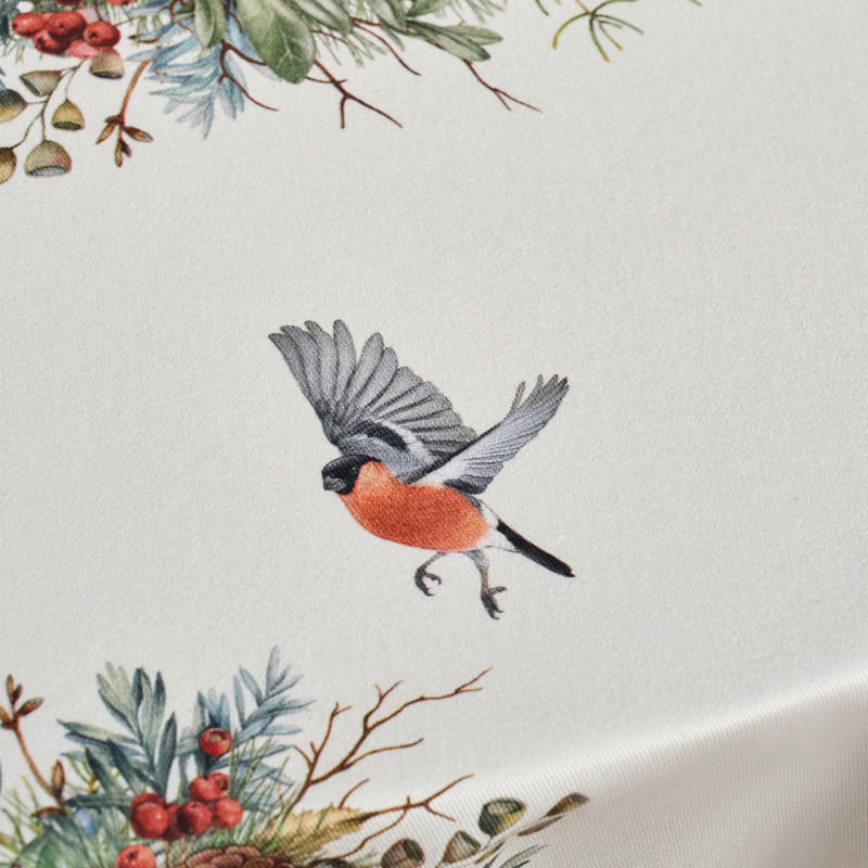 Скатерть создана по эксклюзивному дизайну для бренда Lefard и гармонирует с одноимённой посудой из коллекции Морозко. Снегири. Это текстиль высокого класса, который подойдёт как для домашнего использования, так и в качестве подарка.