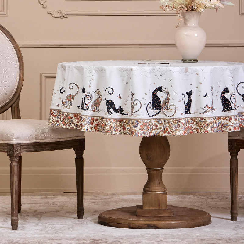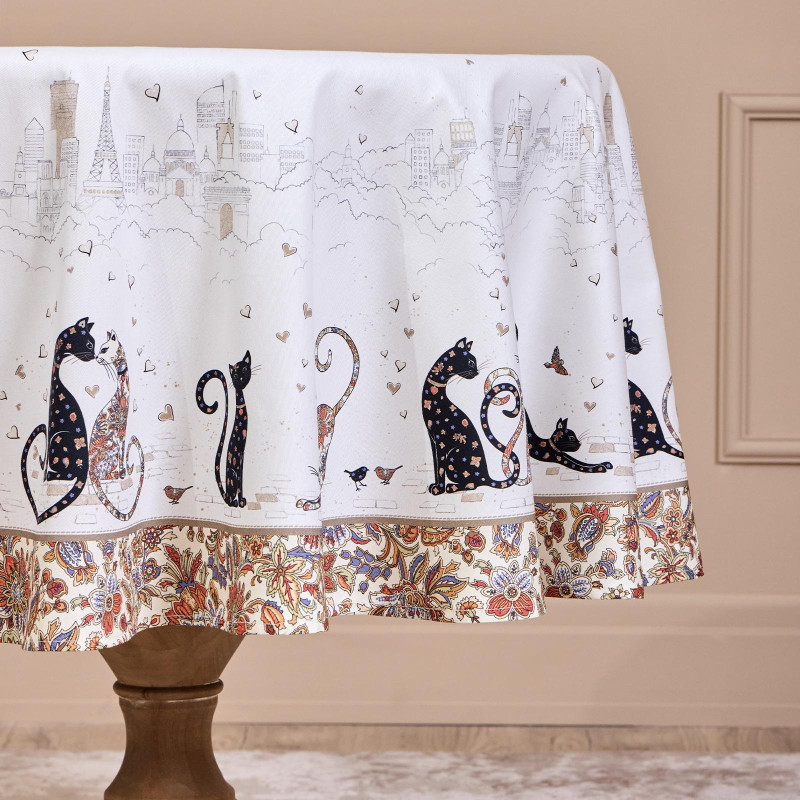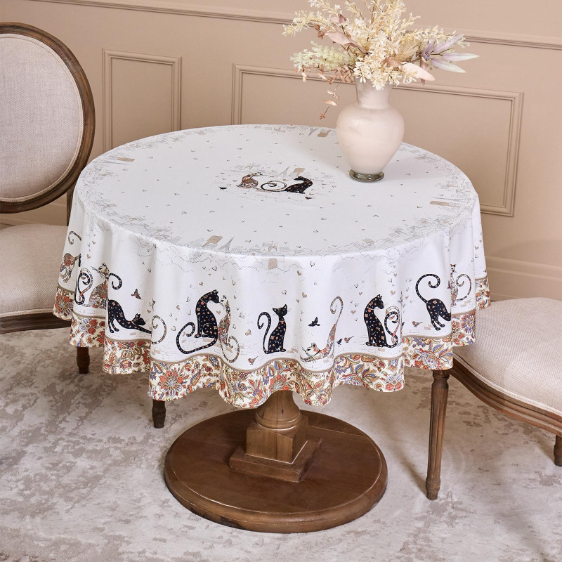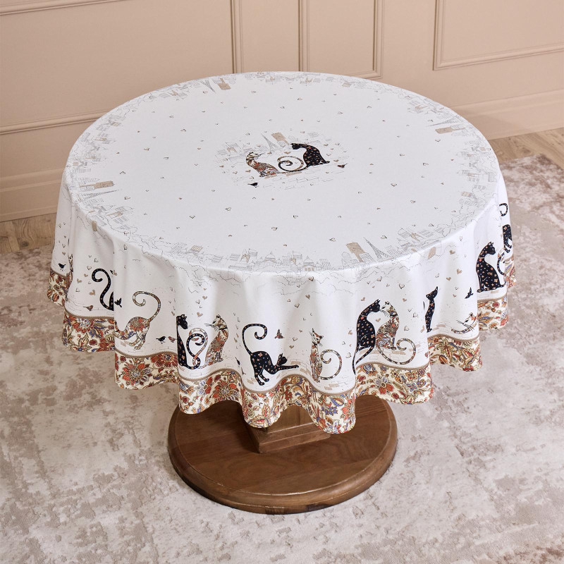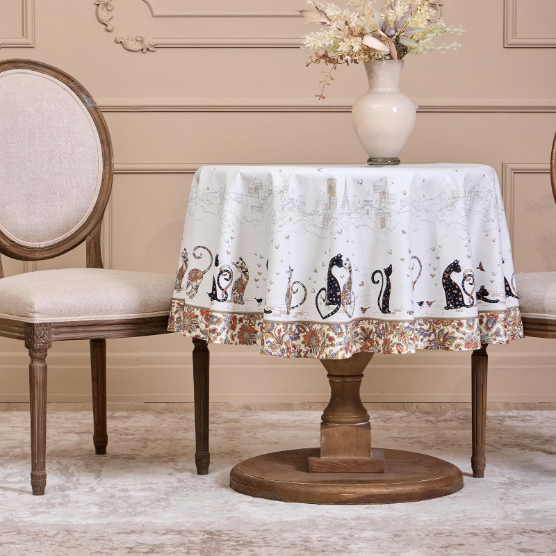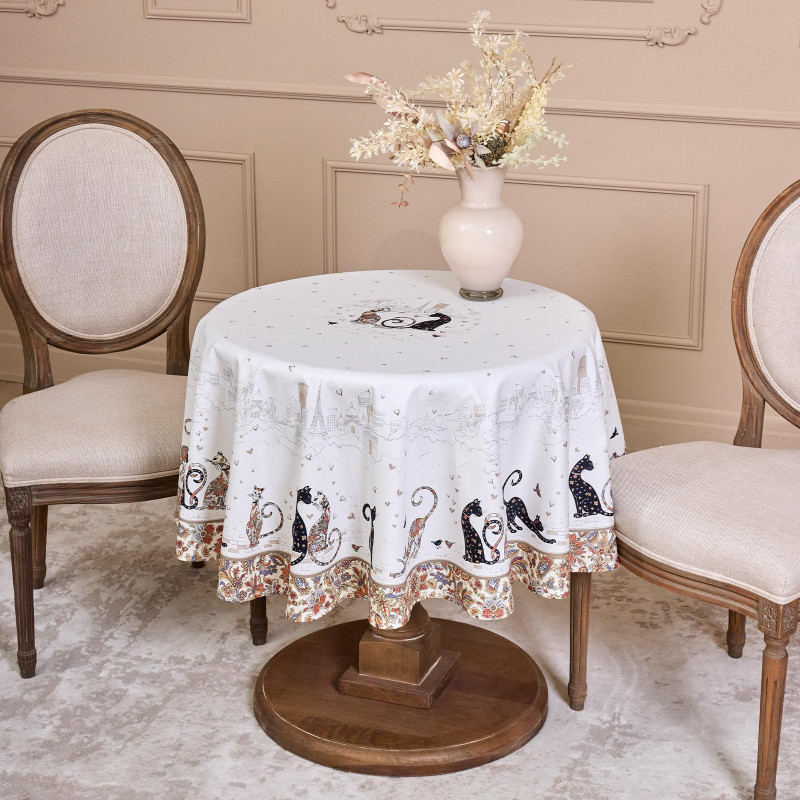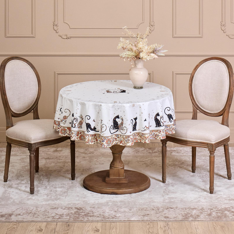 Скатерть круглая "ПАРИЖСКИЕ КОТЫ" ,150 см, твилл ,белый,пропитка LEFARD 850-746-23
