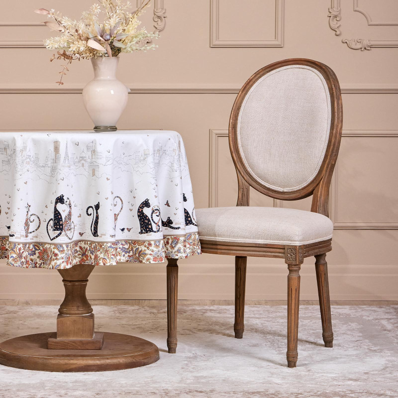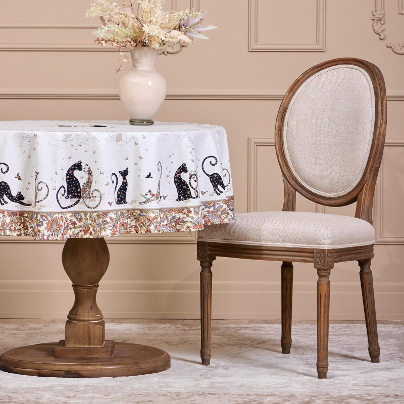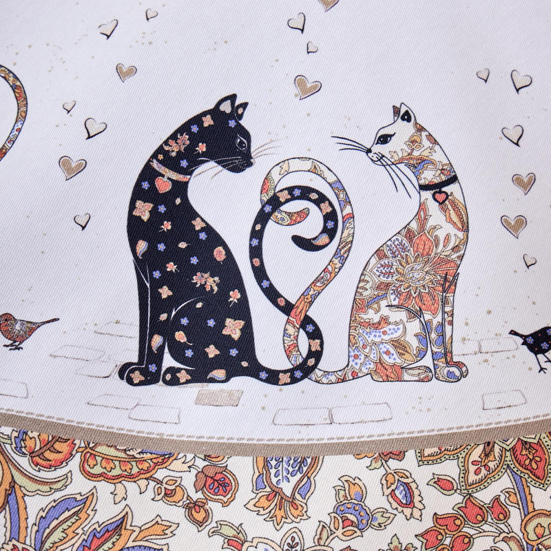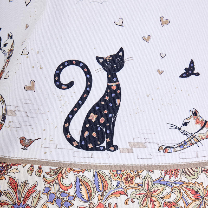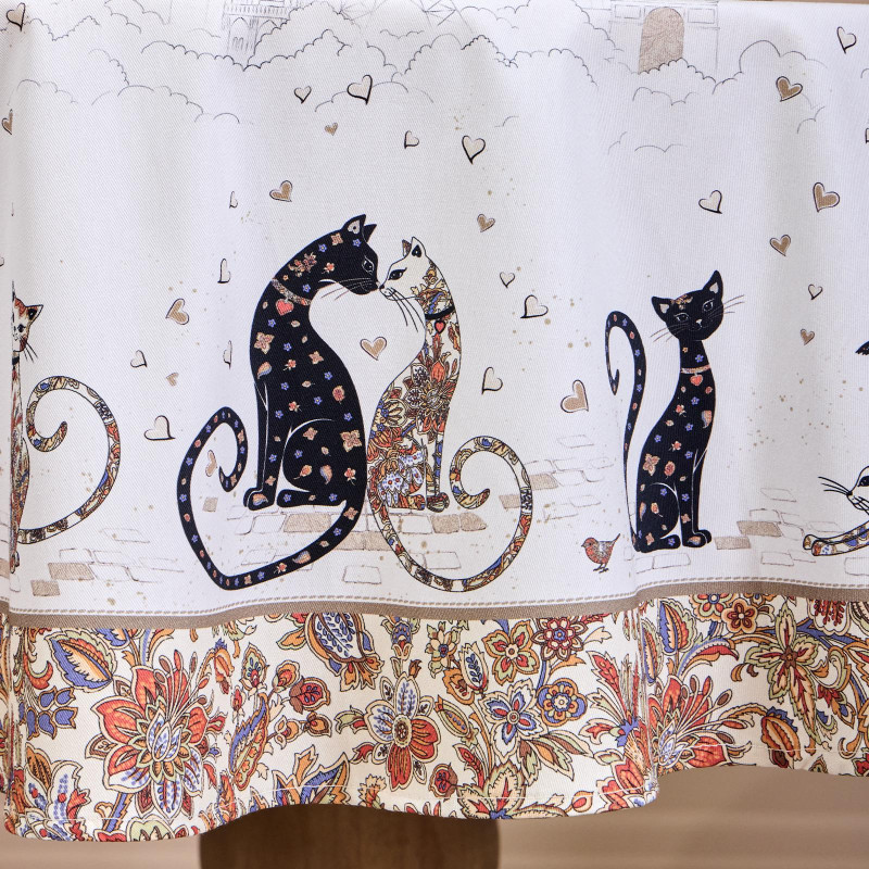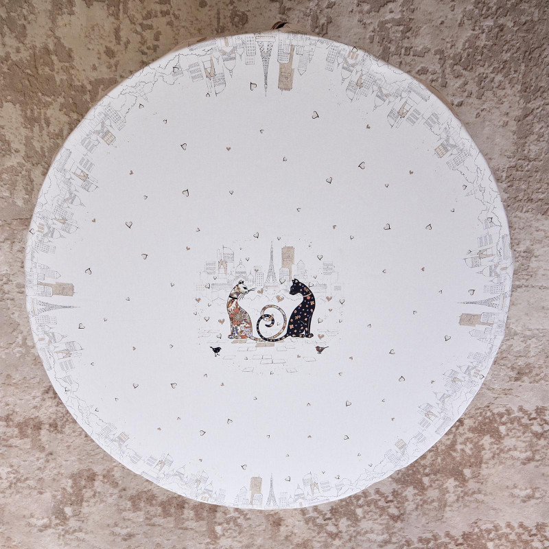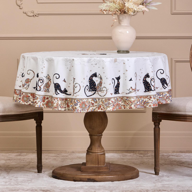 Скатерть круглая "ПАРИЖСКИЕ КОТЫ" ,150 см, твилл ,белый,пропитка LEFARD 850-746-23