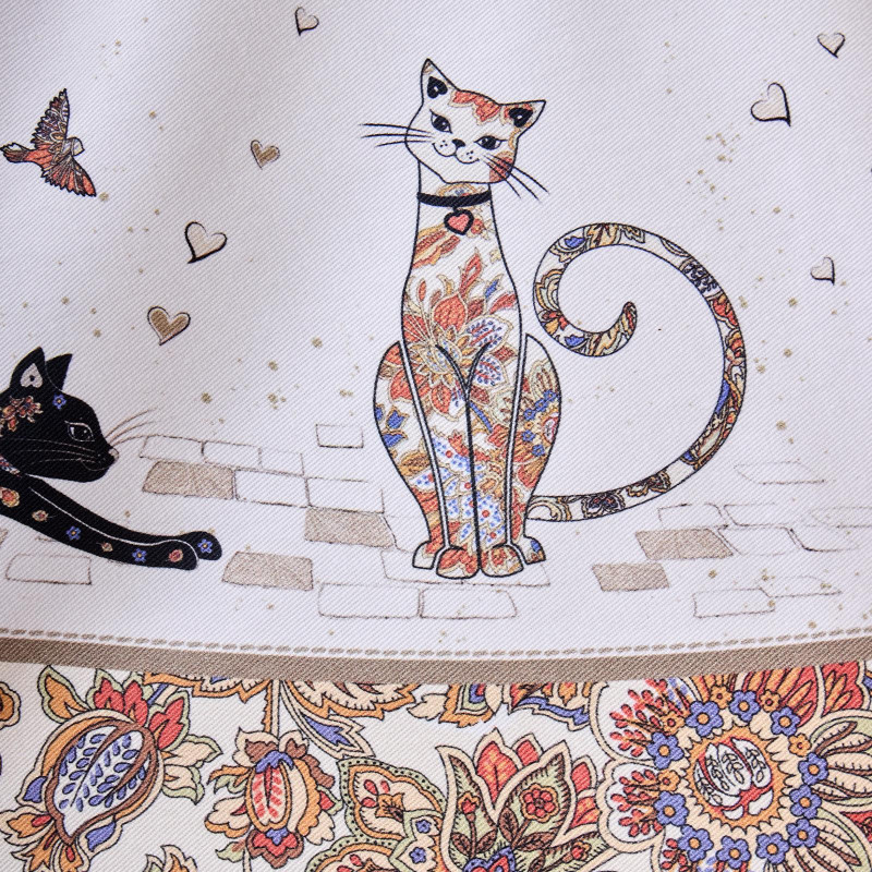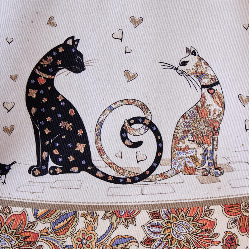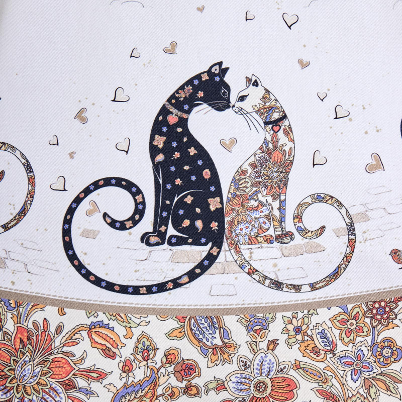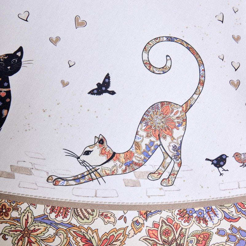 Сервировочная многоразовая скатерть с элегантным растительным орнаментом и очаровательным рисунком котов станет изюминкой вашего интерьера. Играющий дизайн с кошками добавляет уюта и теплоты, превращая сервировку стола в стильный и необычный элемент декора.