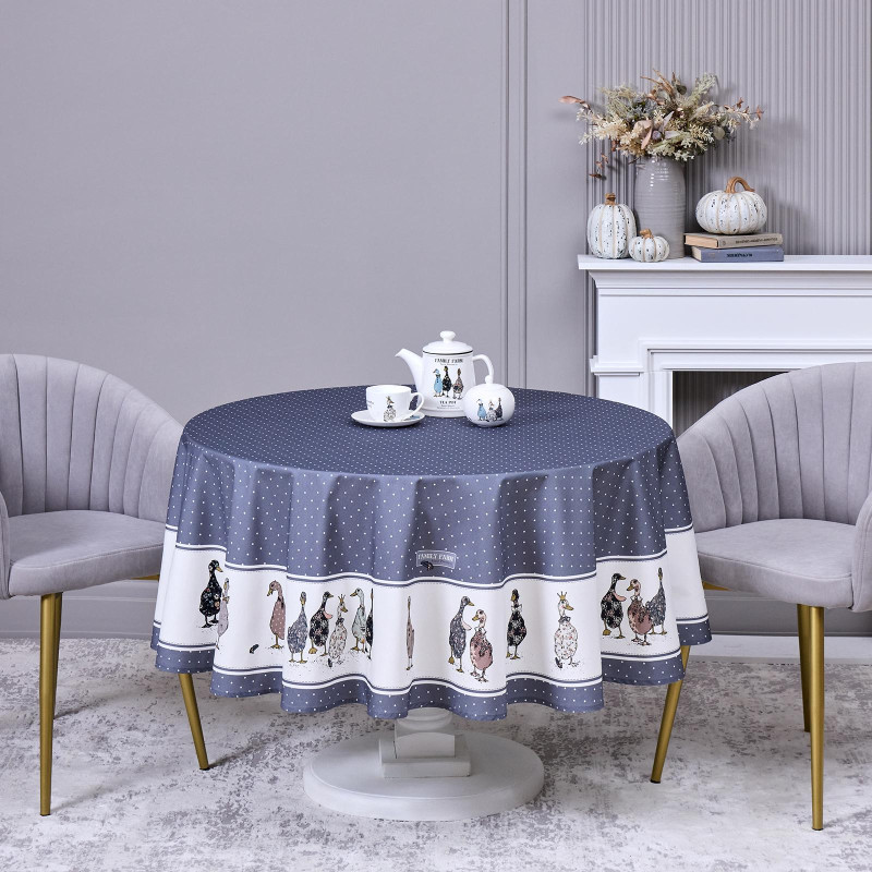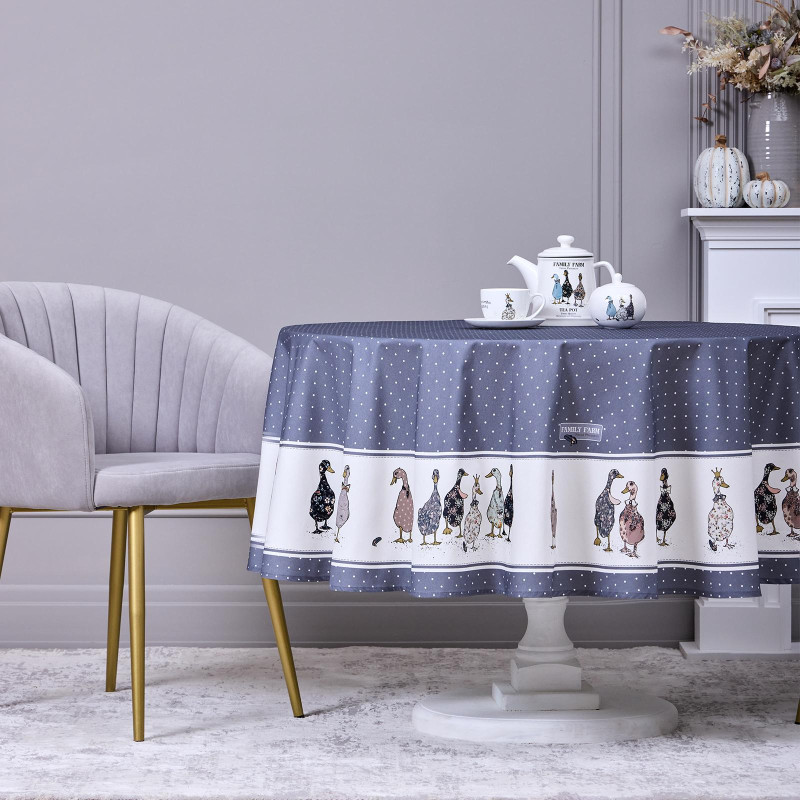 Скатерть круглая "FAMILY FARM" 190 см , 100% хлопок,твил, пропитка, графит LEFARD 850-747-22