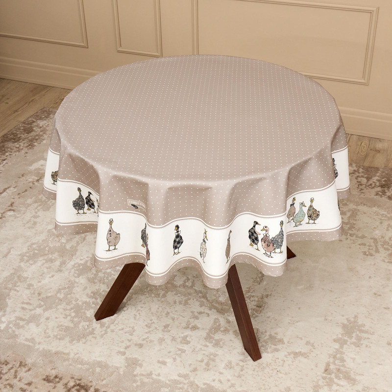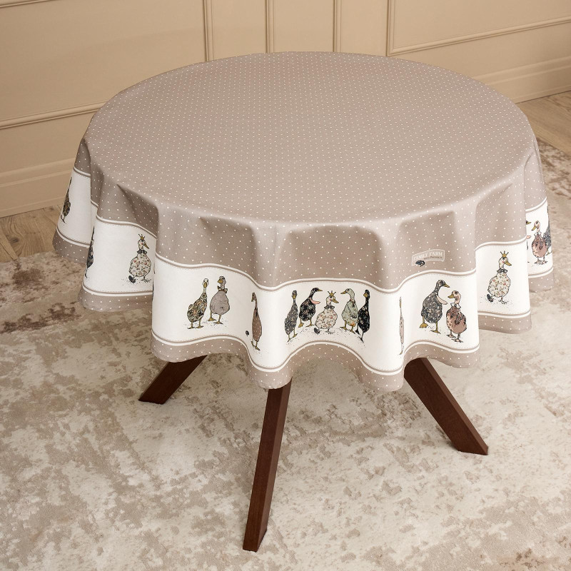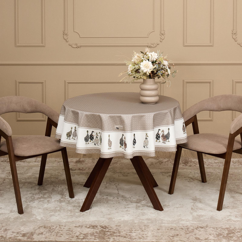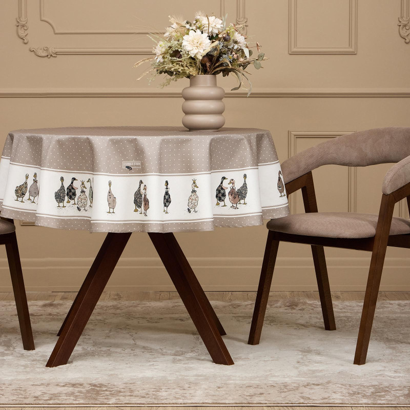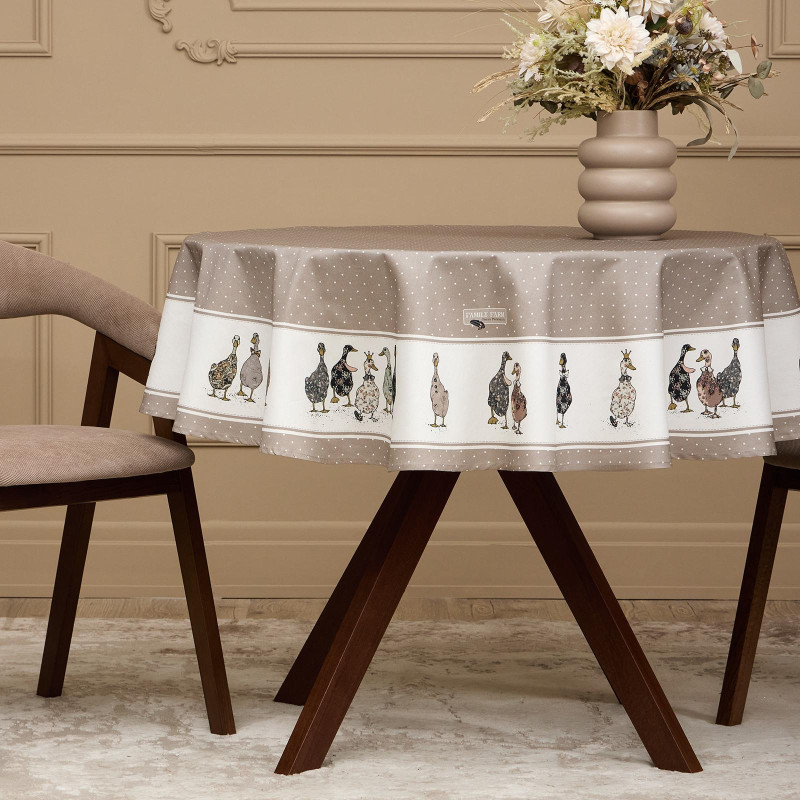 Скатерть круглая"family farm" 150 см ,100% хлопок,капучино ,твил, пропитка LEFARD 850-749-23