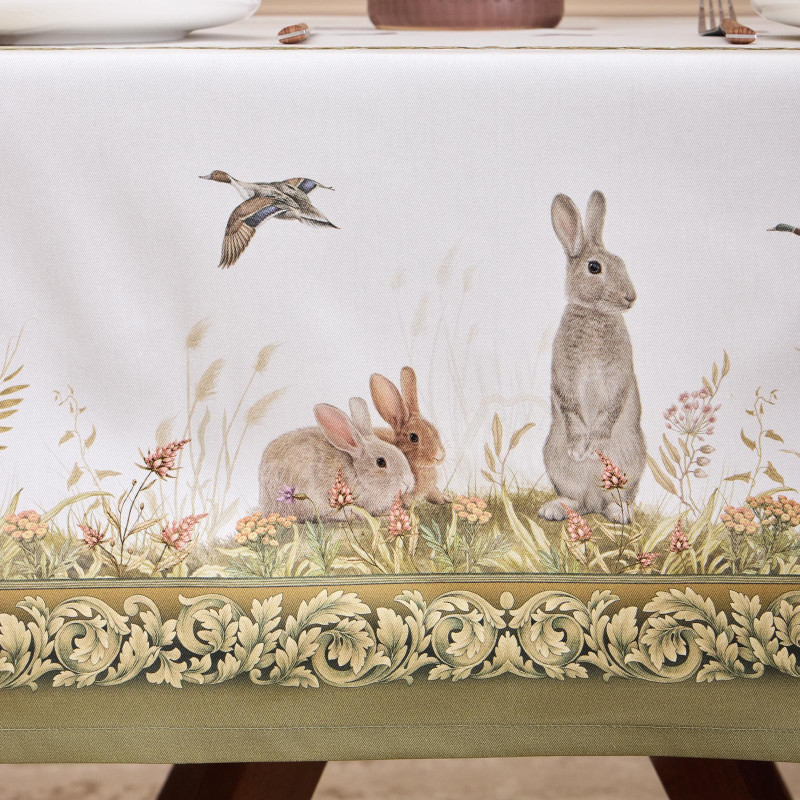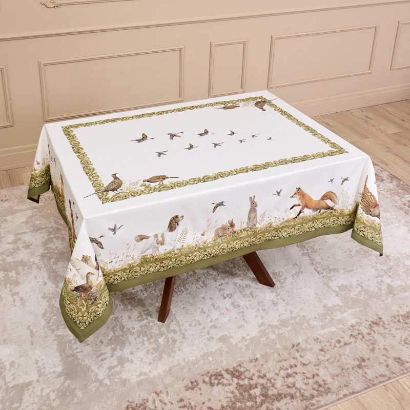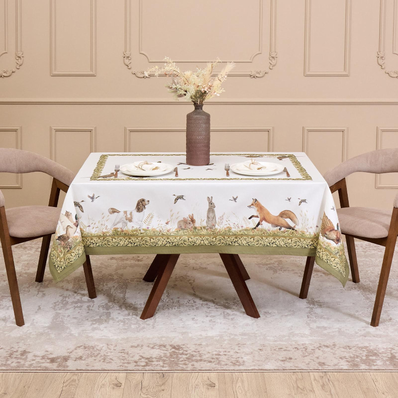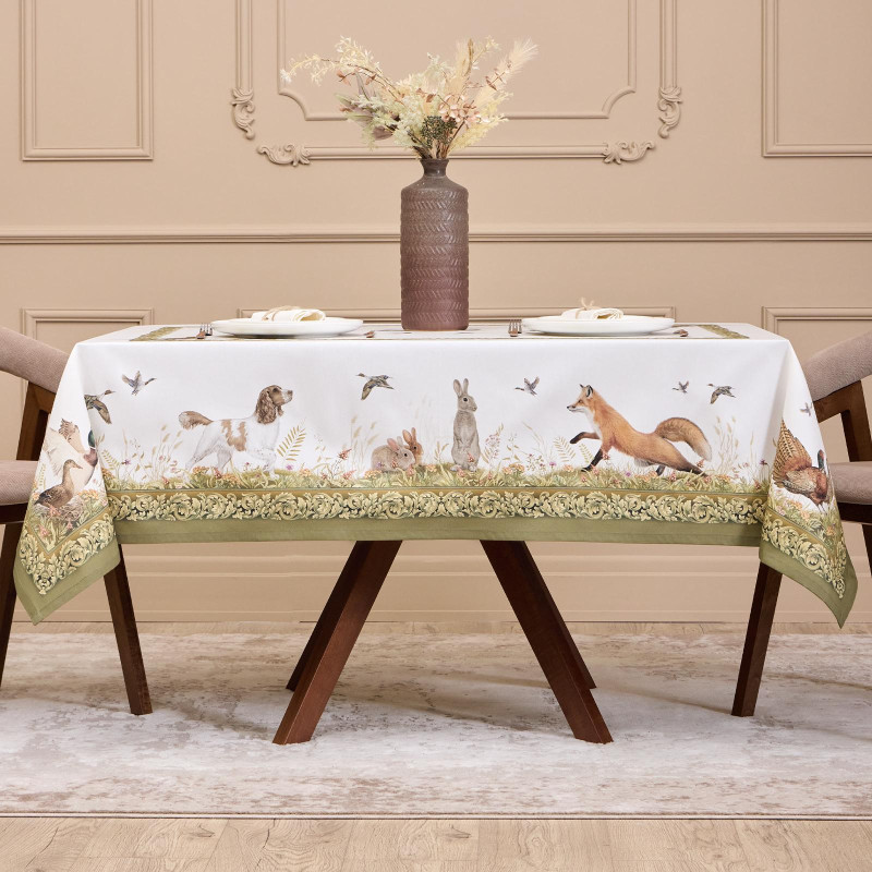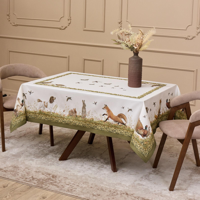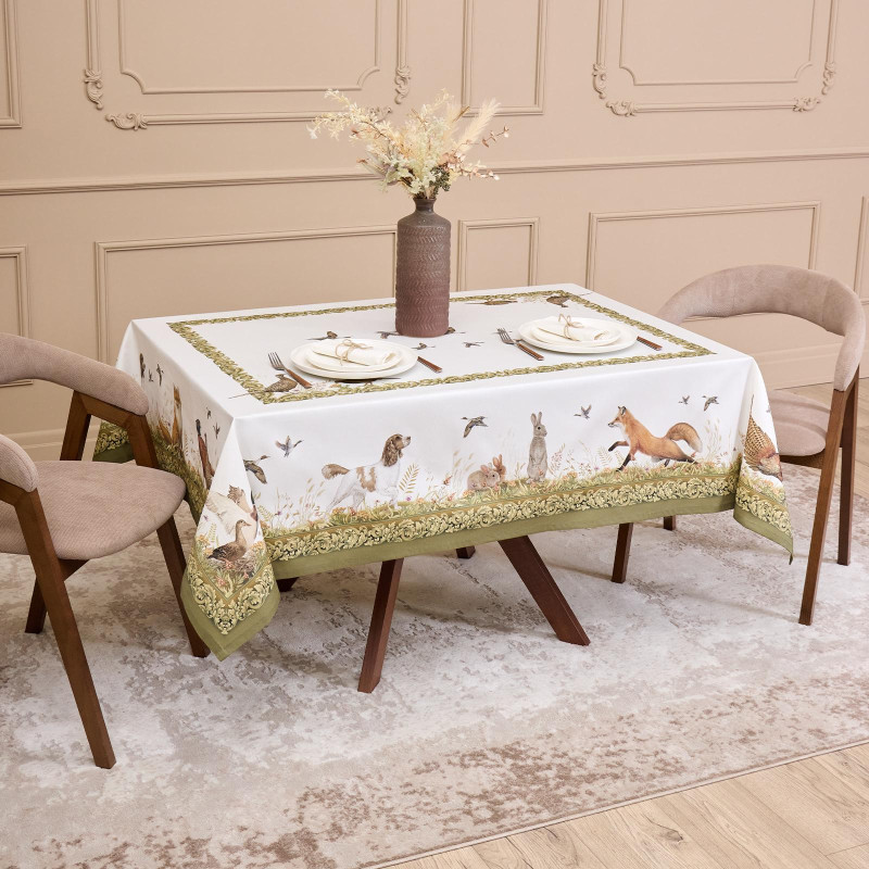 Скатерть " ОХОТА" 140х180см , 100% хлопок, зеленый , твил, пропитка LEFARD 850-751-2