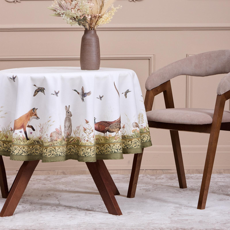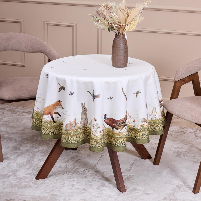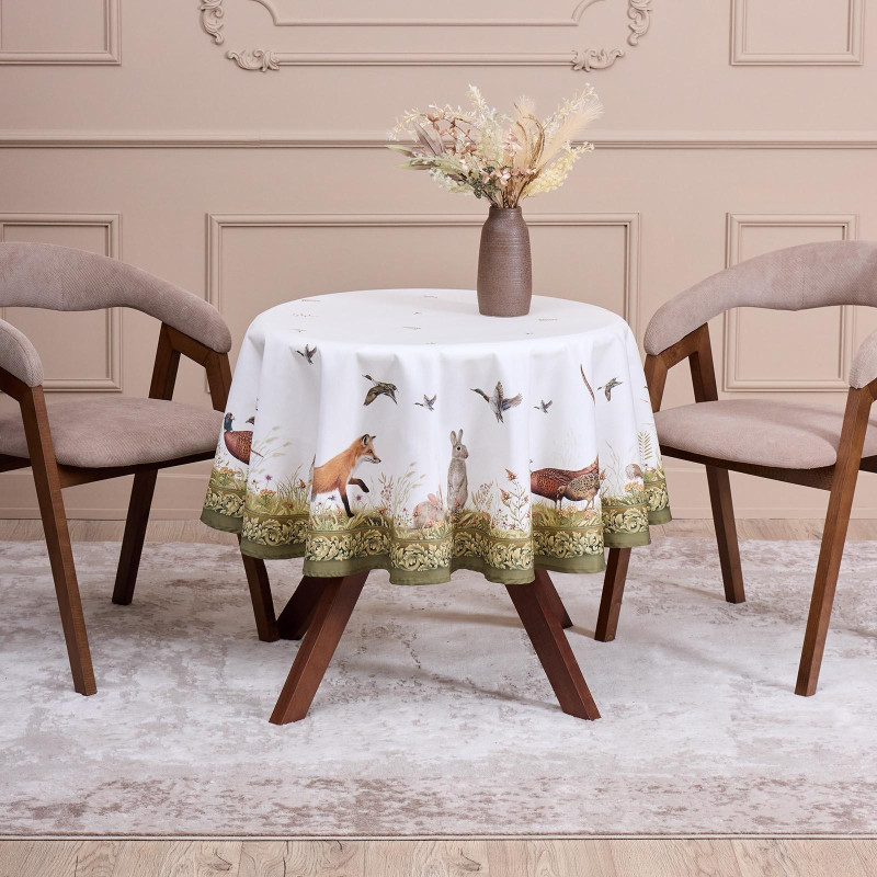 Круглая скатерть из коллекции «Охота» от Lefard — практичный и декоративный акцент для сервировки стола.
