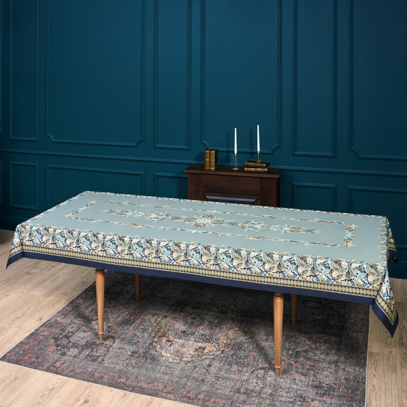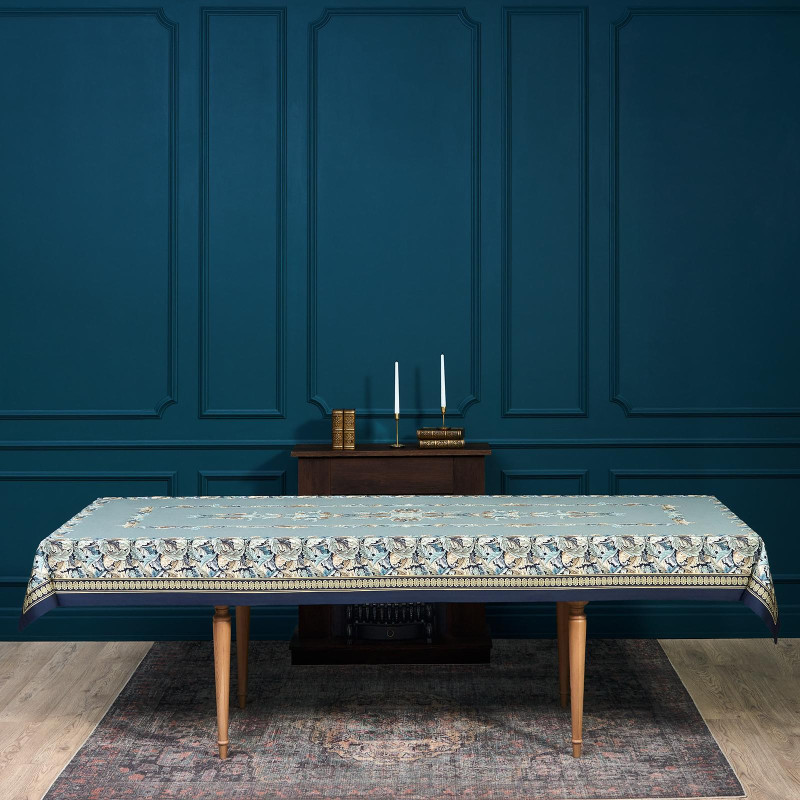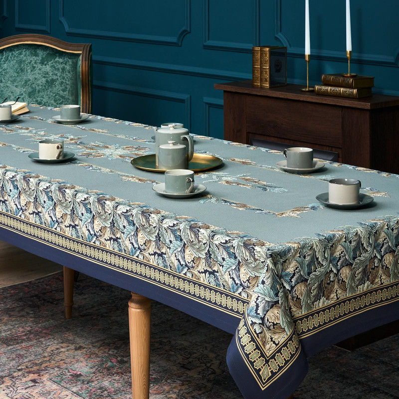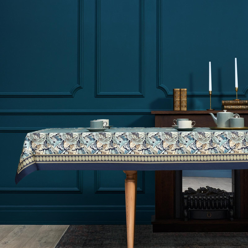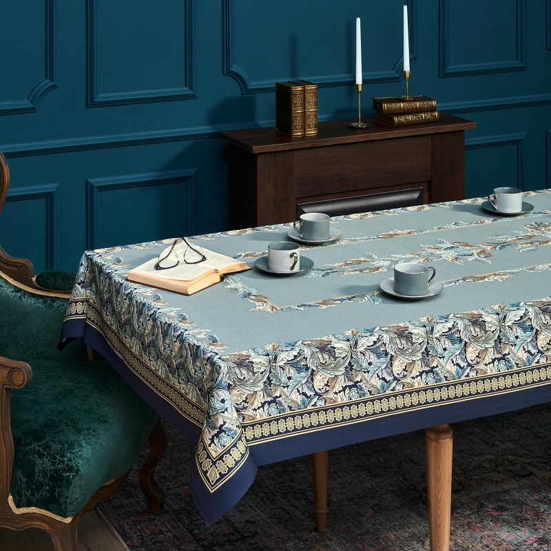 Скатерть "ЛИСТЬЯ МОРРИСА" gold stripe 140х300см , 100% хлопок, твил, пропитка LEFARD 850-752-23