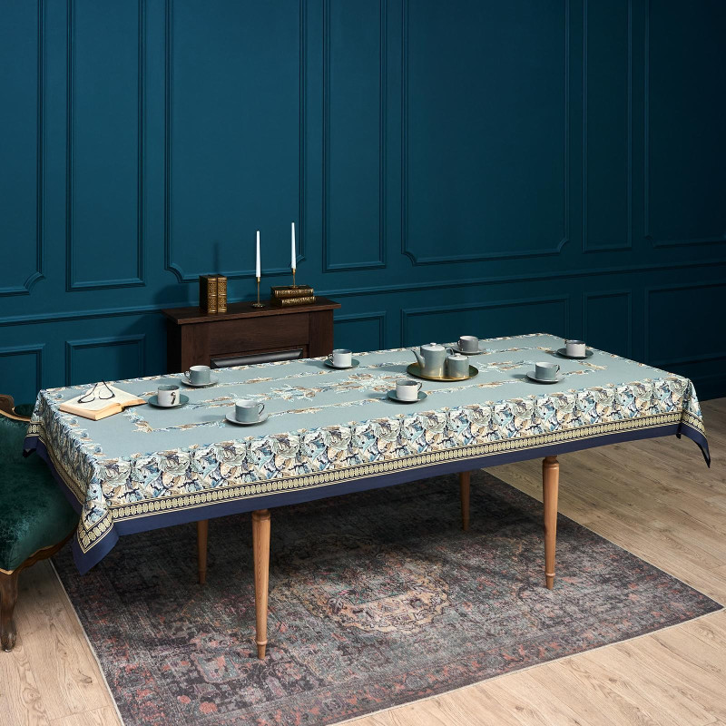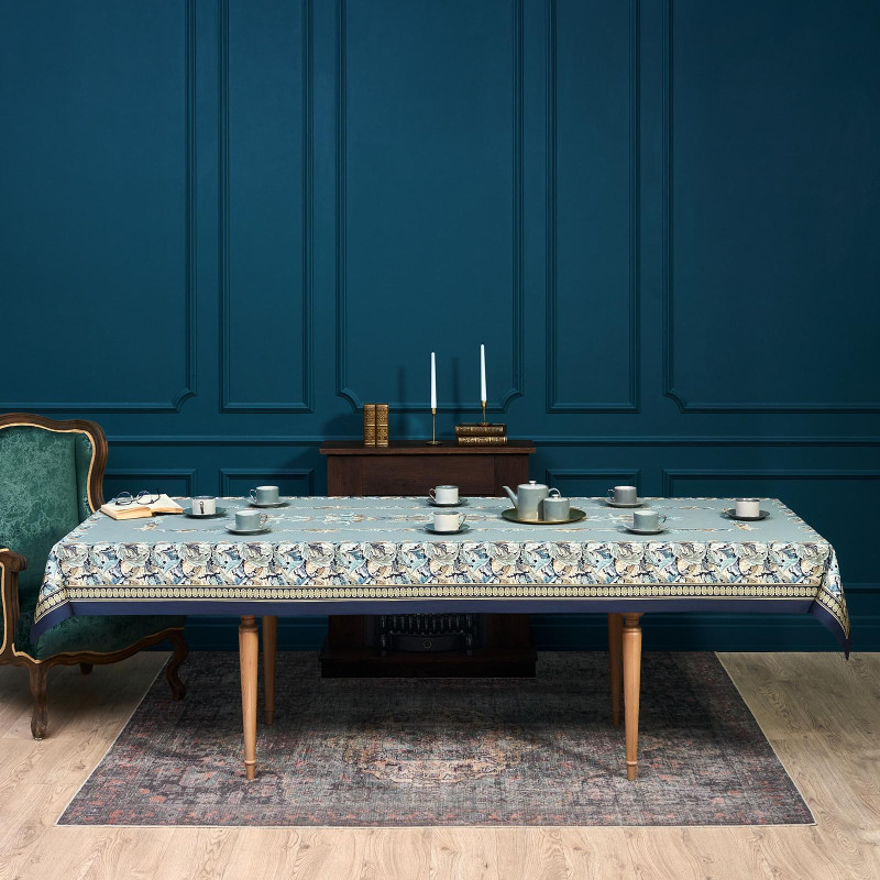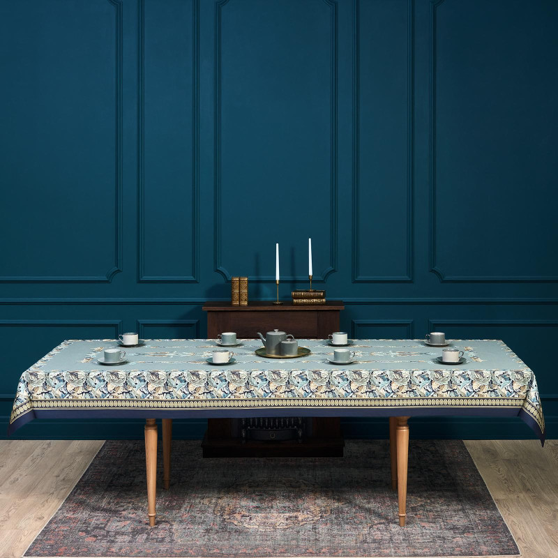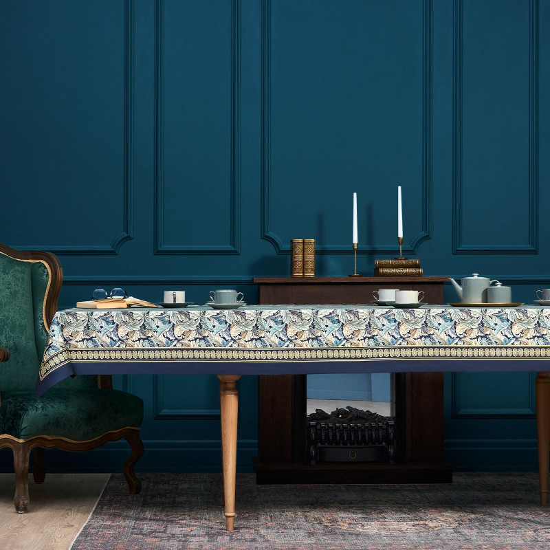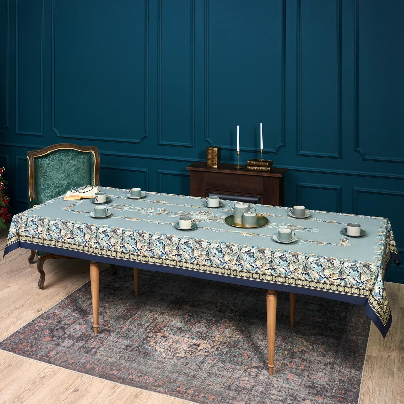 Скатерть "ЛИСТЬЯ МОРРИСА" gold stripe 140х300см , 100% хлопок, твил, пропитка LEFARD 850-752-23