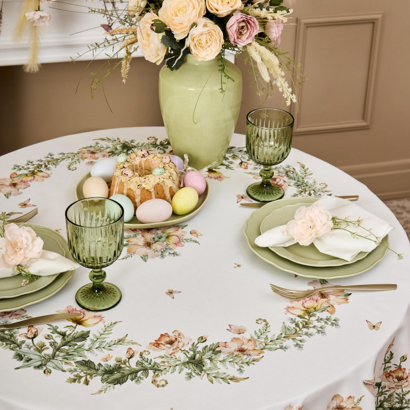 Скатерть легко сочетается с посудой из этой же коллекции. Подходит как подарок на день рождения, новоселье, свадьбу или 8 марта.
