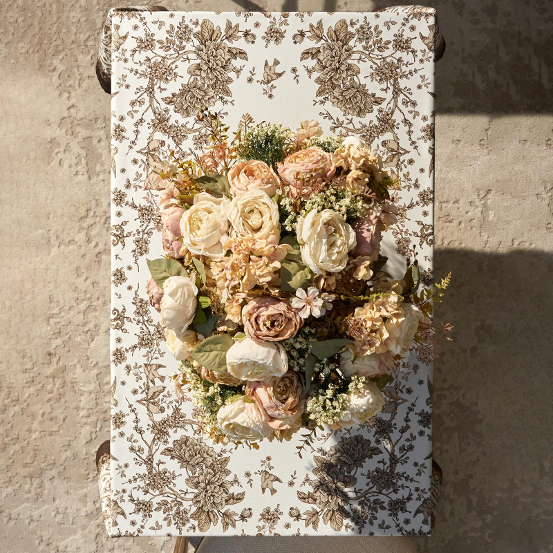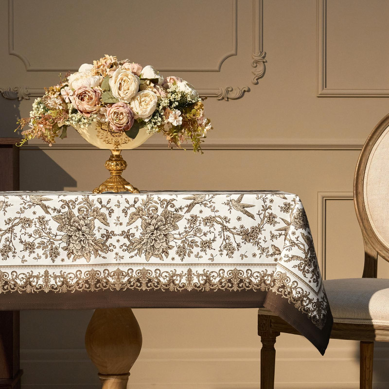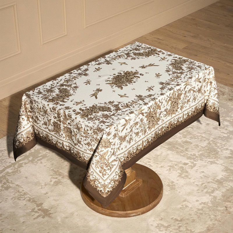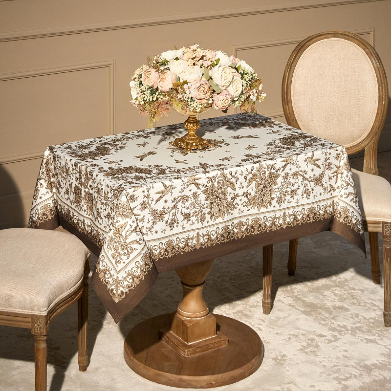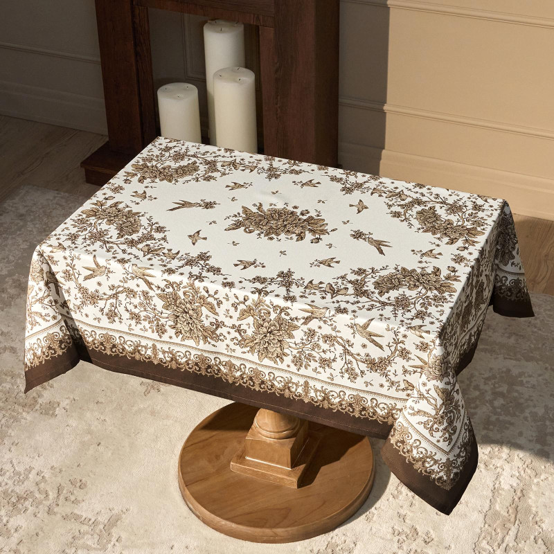 Размер позволяет использовать скатерть для прямоугольных и овальных столов, обеспечивая аккуратный свес и гармоничный внешний вид. Плотное хлопковое полотно устойчиво к износу, а цифровая печать сохраняет яркость цвета даже после многократных стирок.