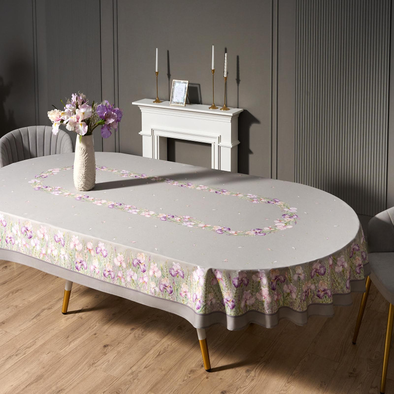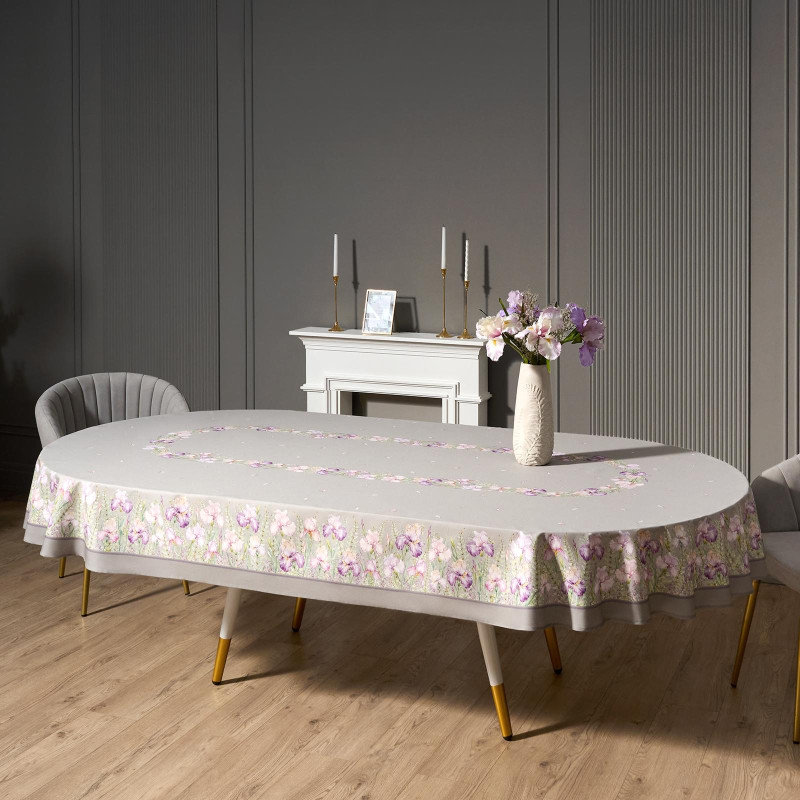 Скатерть овальная "ИРИСЫ" ,180х300см ,серый,100%хлопок ,твил LEFARD 850-755-41