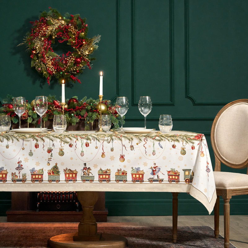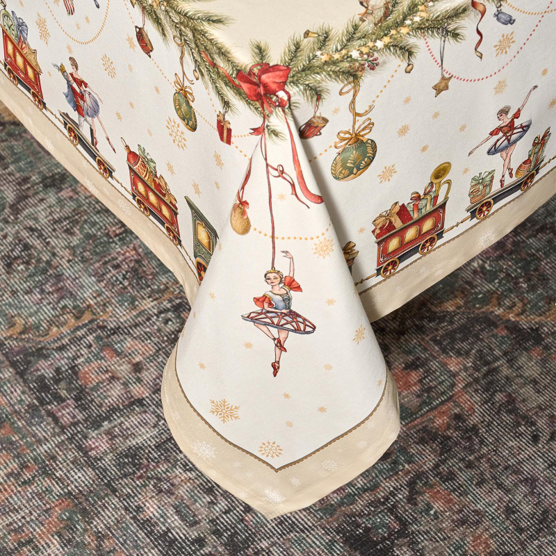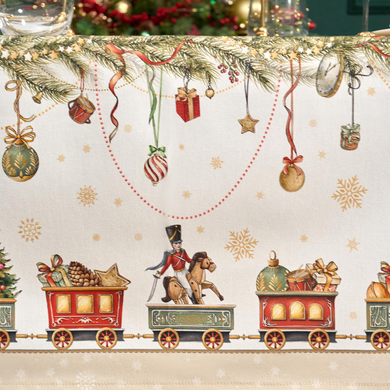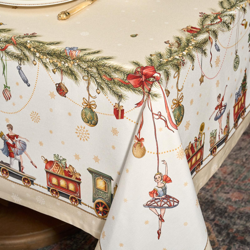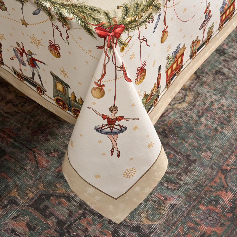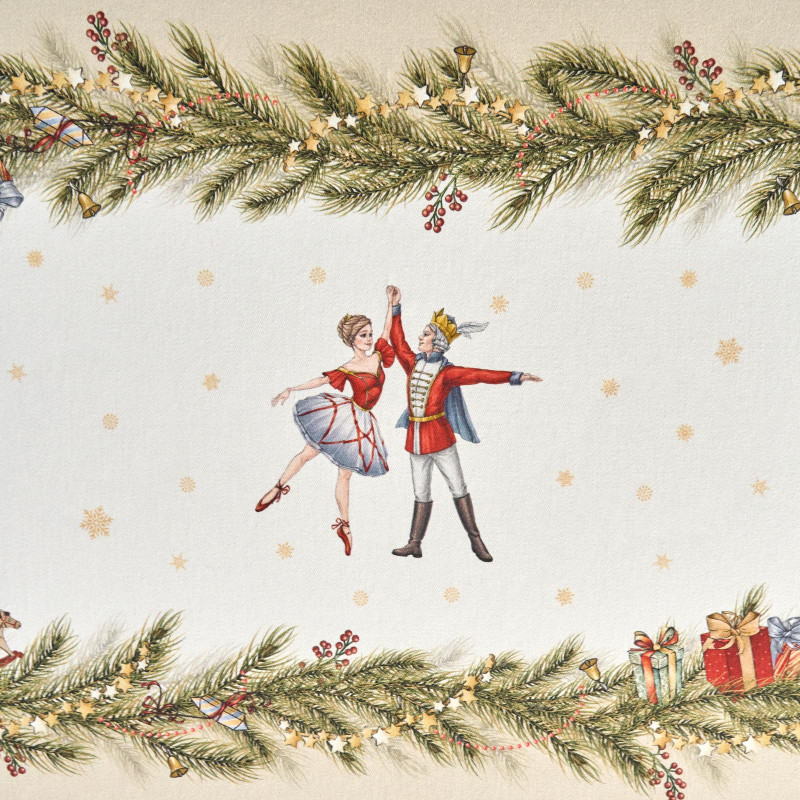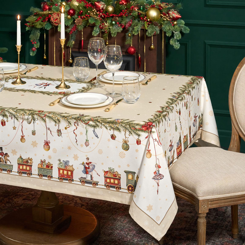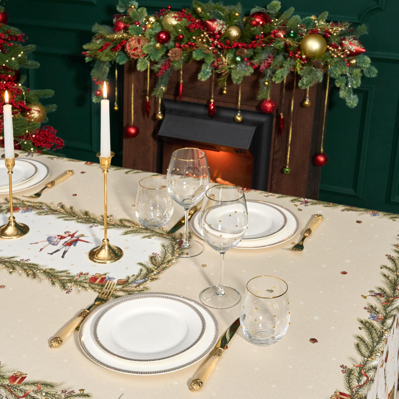 Скатерть создана по эксклюзивному дизайну для бренда Lefard и гармонирует с одноимённой посудой из коллекции Щелкунчик. Это текстиль высокого класса, который подойдёт как для домашнего использования, так и в качестве подарка.