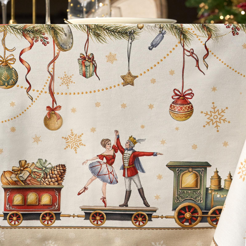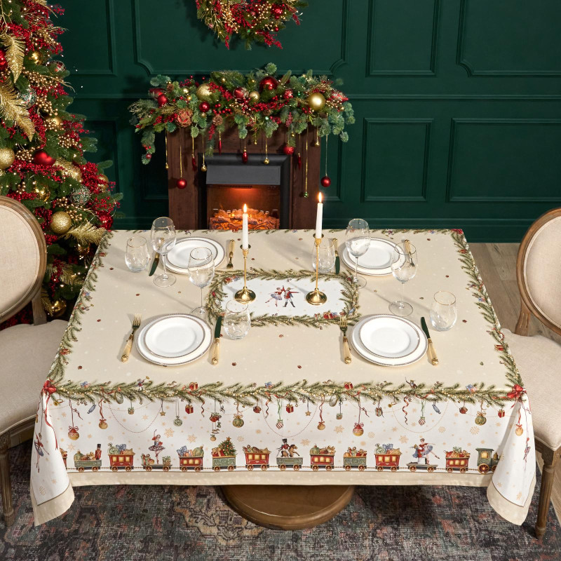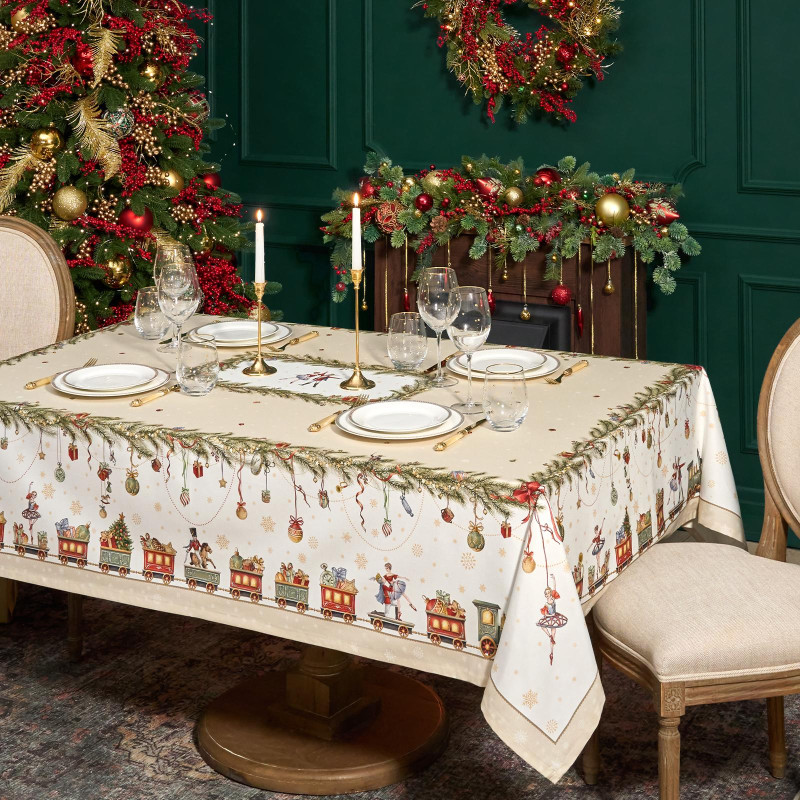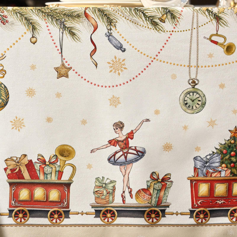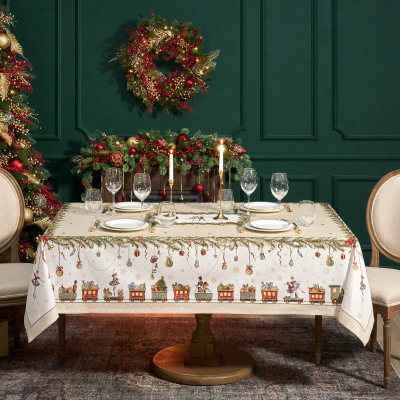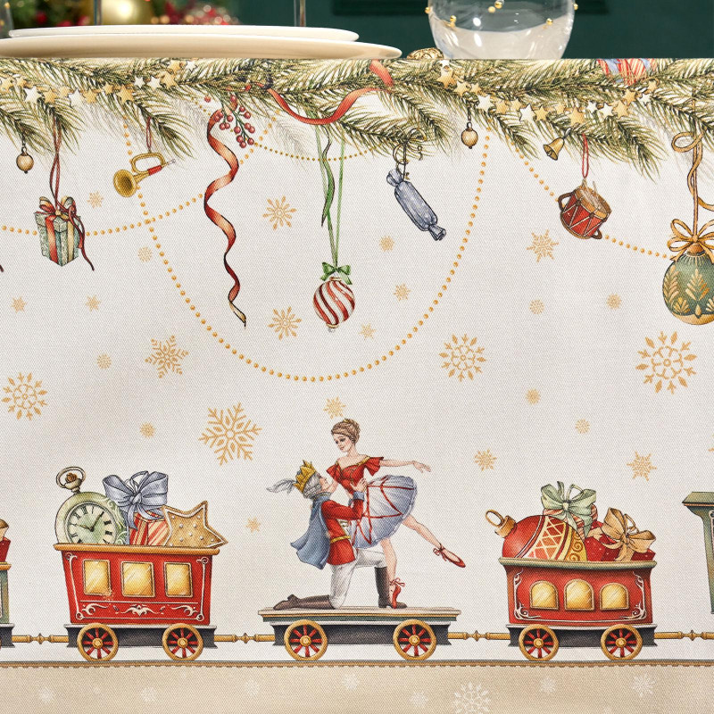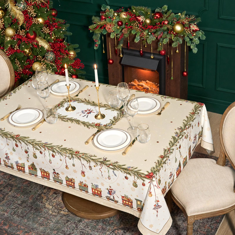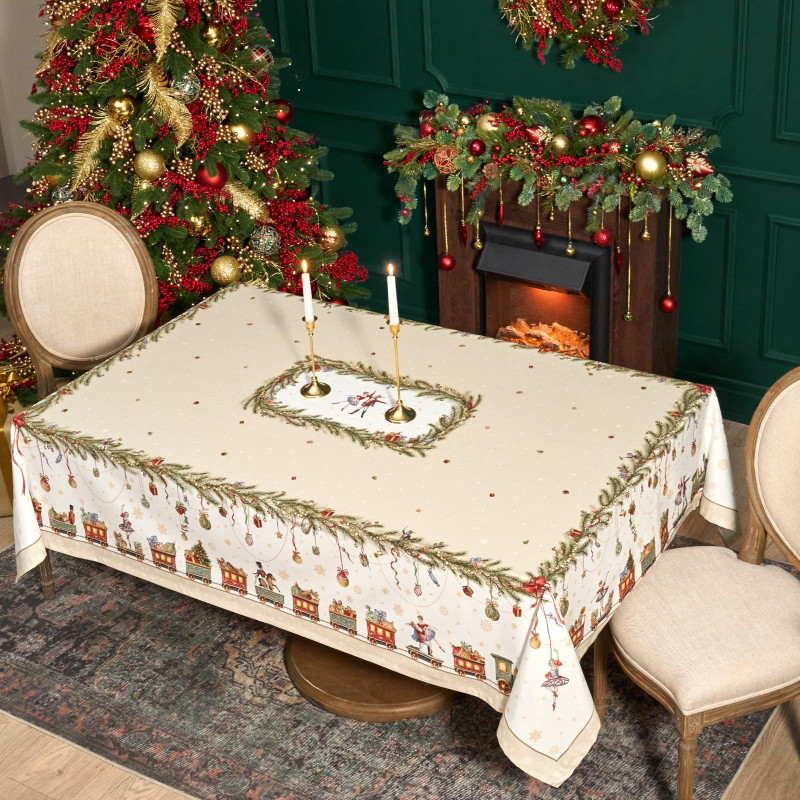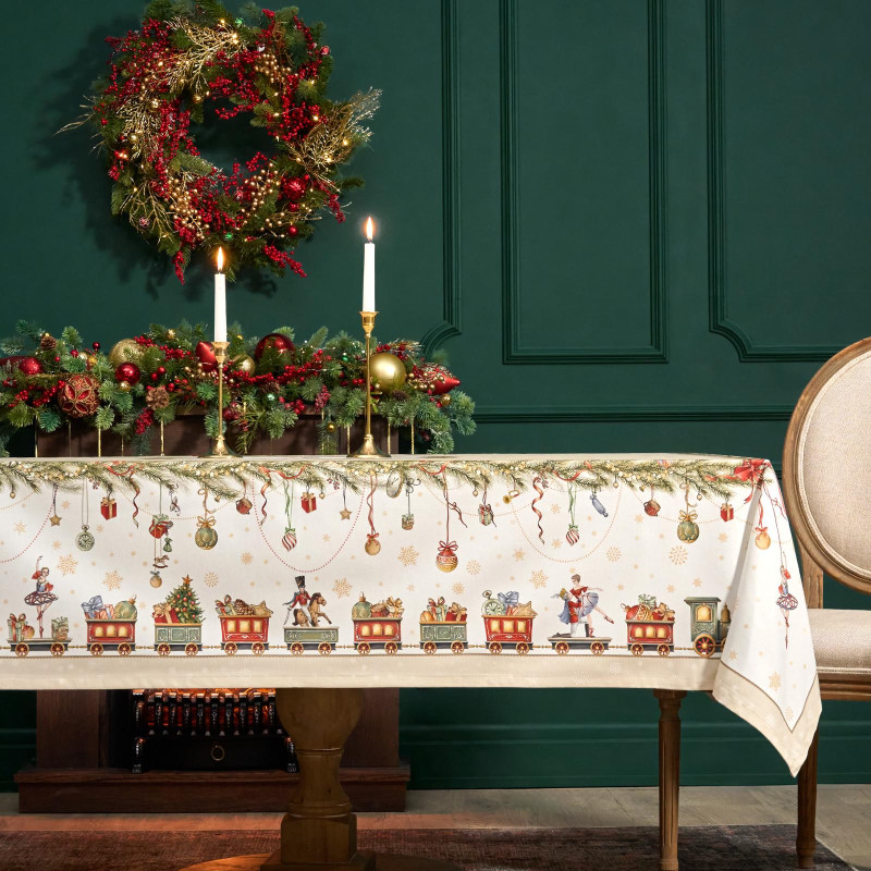 Скатерть создана по эксклюзивному дизайну для бренда Lefard и гармонирует с одноимённой посудой из коллекции Щелкунчик. Это текстиль высокого класса, который подойдёт как для домашнего использования, так и в качестве подарка.