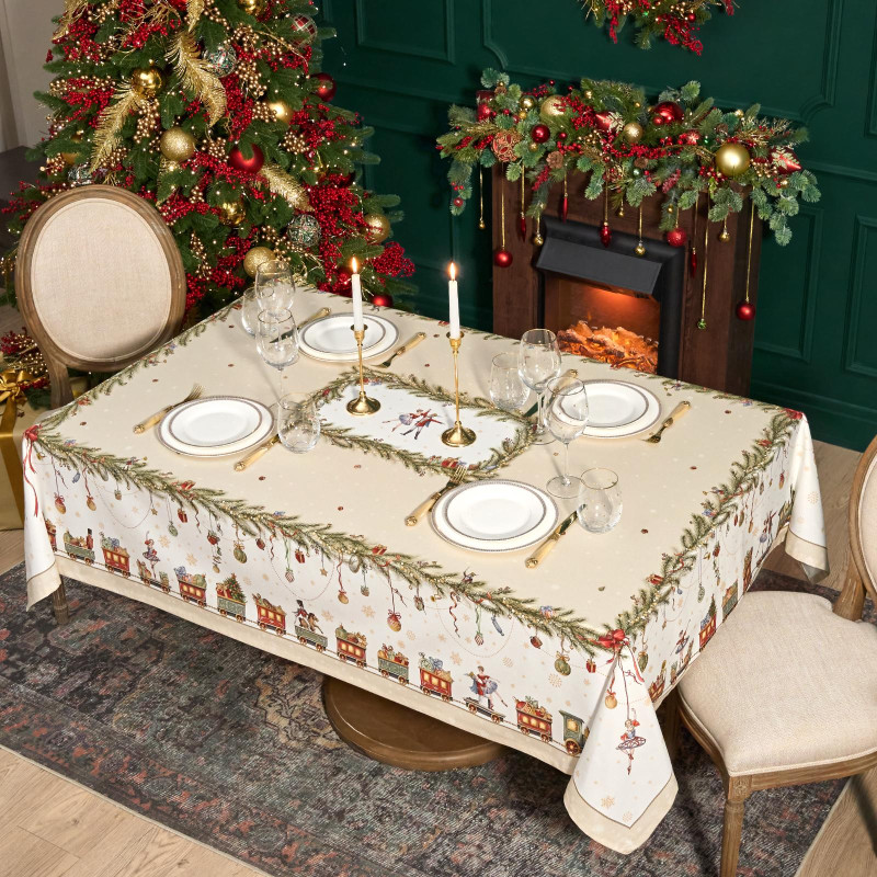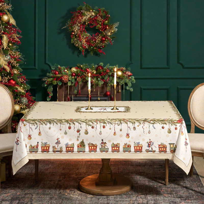 Скатерть от Lefard из коллекции Щелкунчик — элегантное решение для сервировки праздничного стола. Размер 160*220 подходит для больших столов, оптимальный размер стола 100*165 см, создавая равномерный и эстетичный свес.