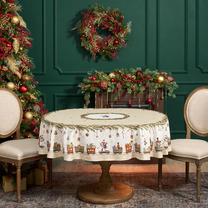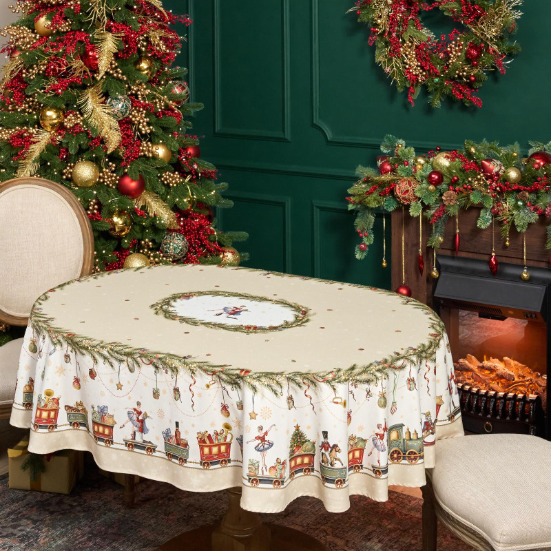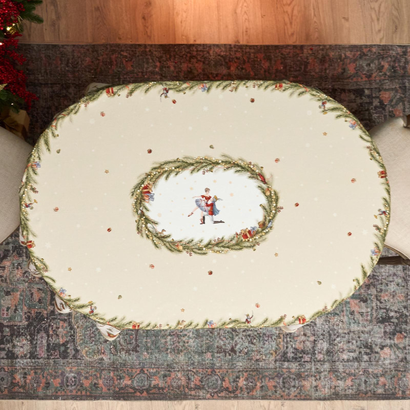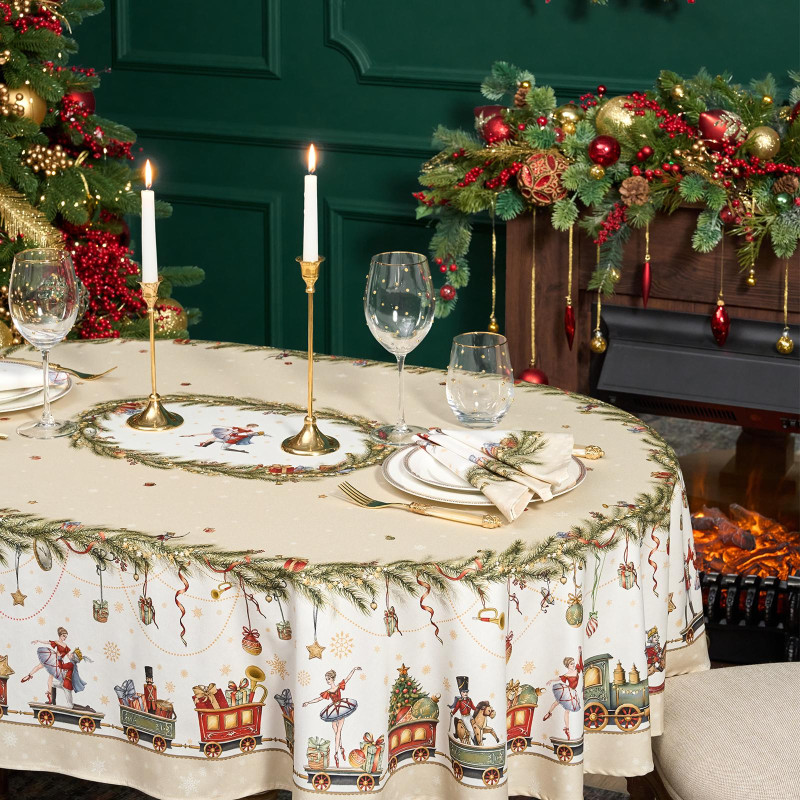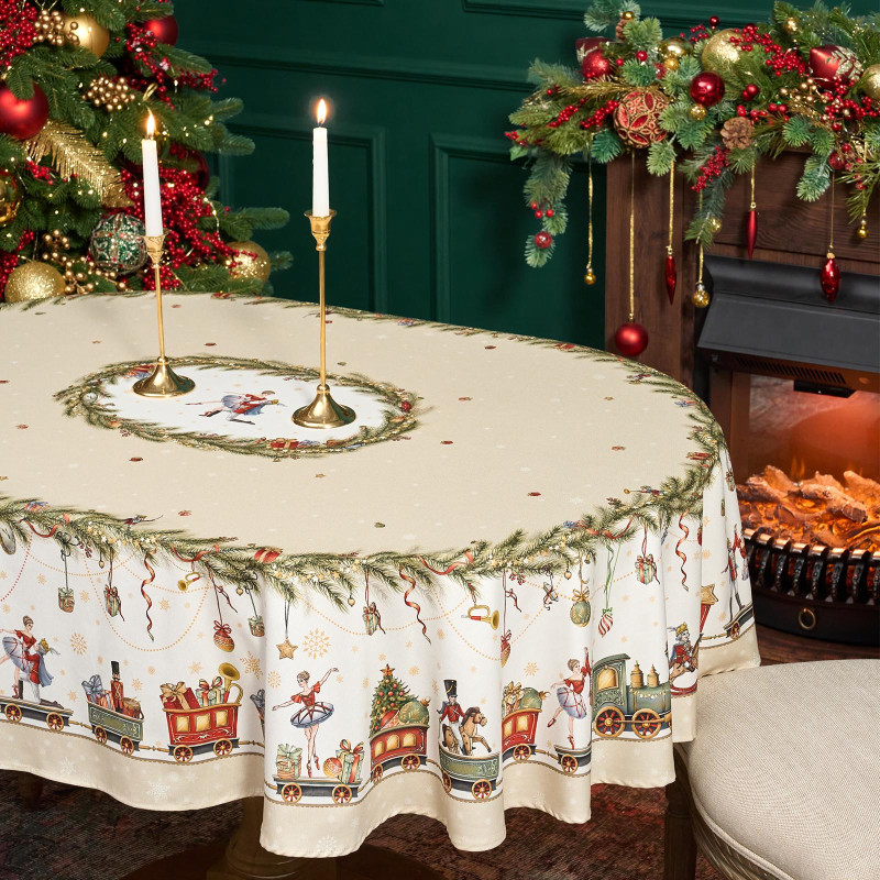 Овальная скатерть создана производителем по эксклюзивному дизайну для серии посуды "Щелкунчик" бренда Lefard. Прекрасно подойдет для любого стола.