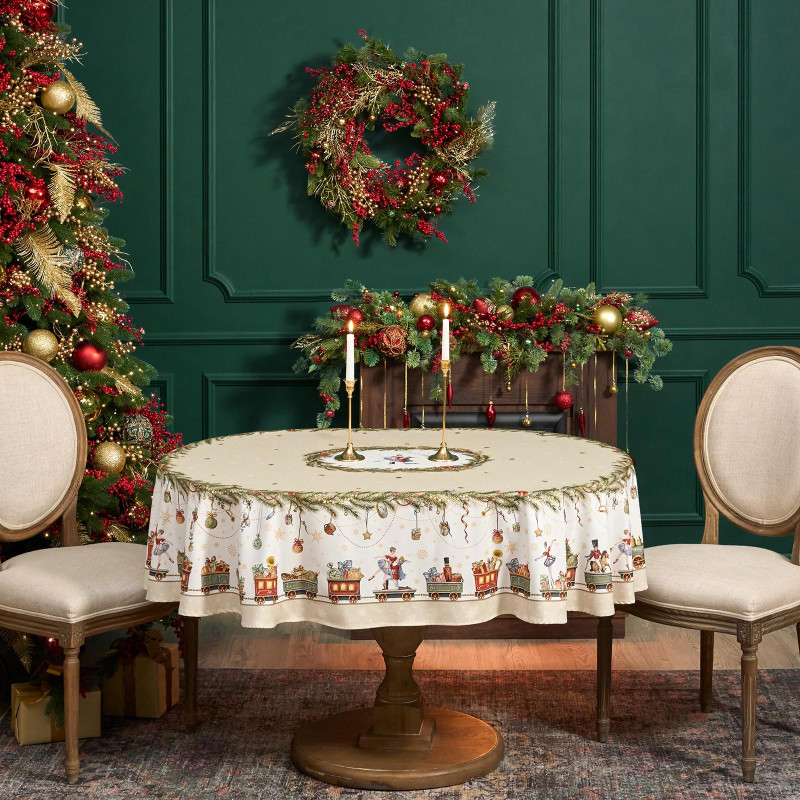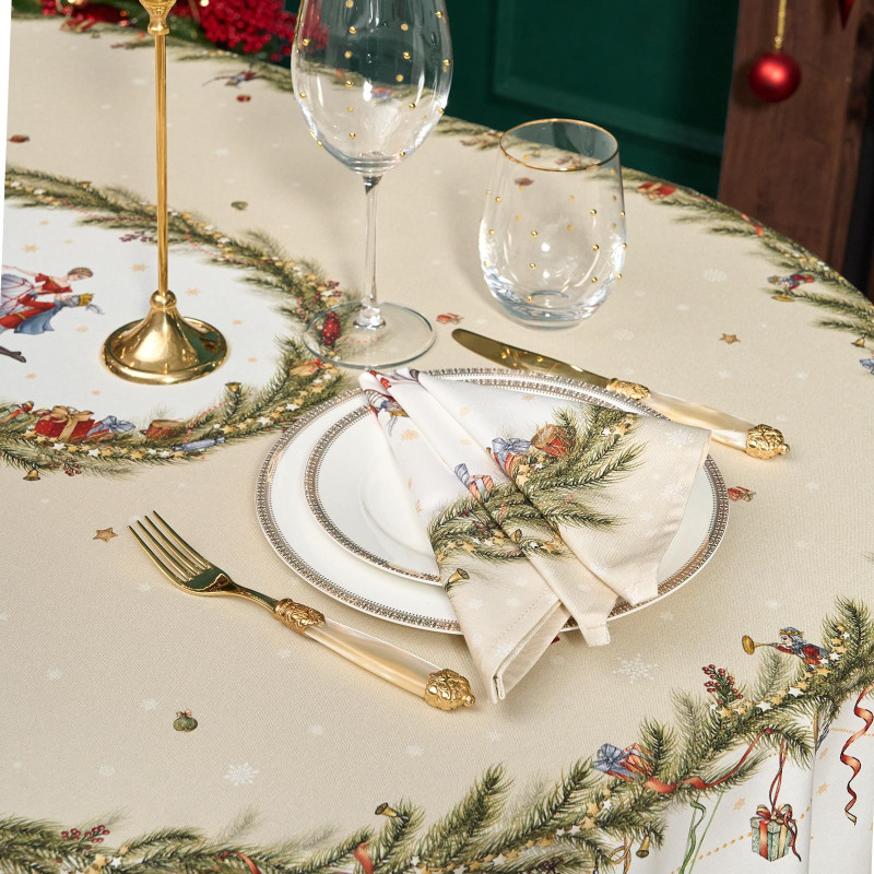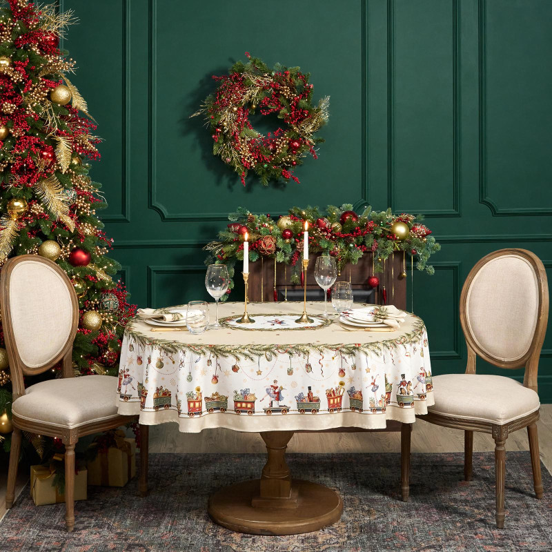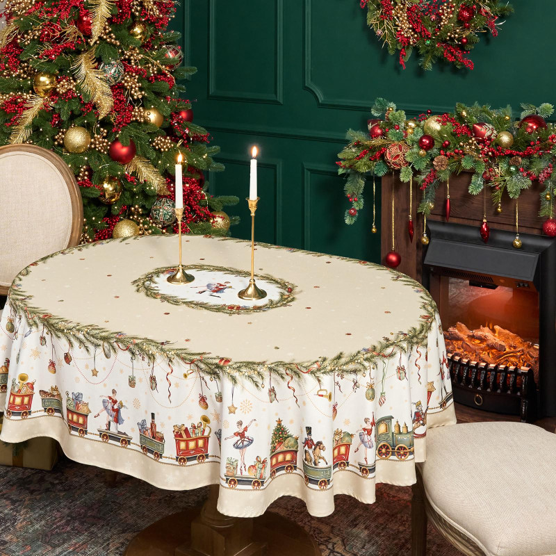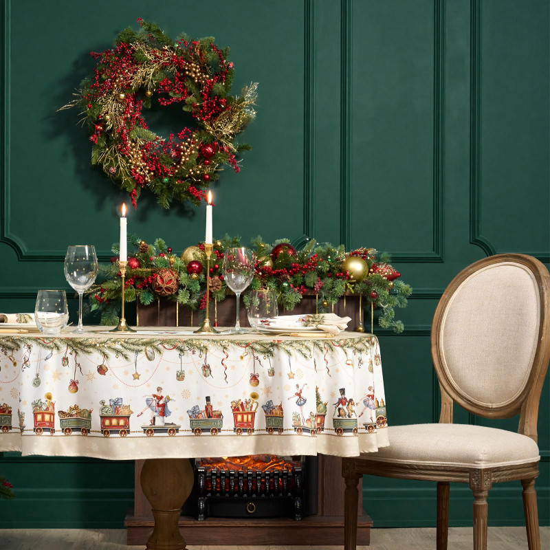 Овальная скатерть создана производителем по эксклюзивному дизайну для серии посуды "Щелкунчик" бренда Lefard. Прекрасно подойдет для любого стола.