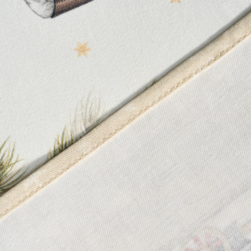 Плотность ткани составляет 190 гм2, она имеет приятную структуру и называется твил. Состав ткани 100% хлопок с водоотталкивающей пропиткой. Наша водонепроницаемая скатерть легка в уходе, она не впитывает мгновенно жидкость на обеденном столе и избавит вас от хлопот с отстированием пятен после застолья. Ее можно стирать и при этом она не теряет свою текстуру и цвет даже после многих стирок. Главными преимуществами твила являются износостойкость, плотность и лёгкий красивый блеск. Эта ткань не заламывается и не сильно мнется. Скатерть из твила выглядит аккуратно и элегантно.