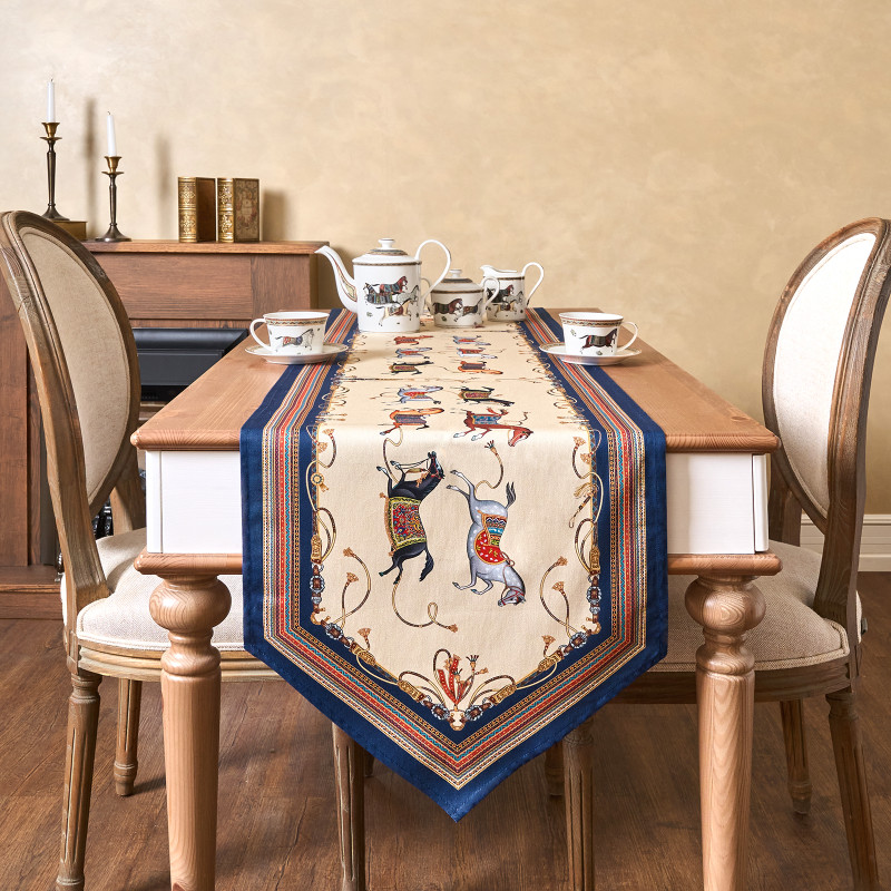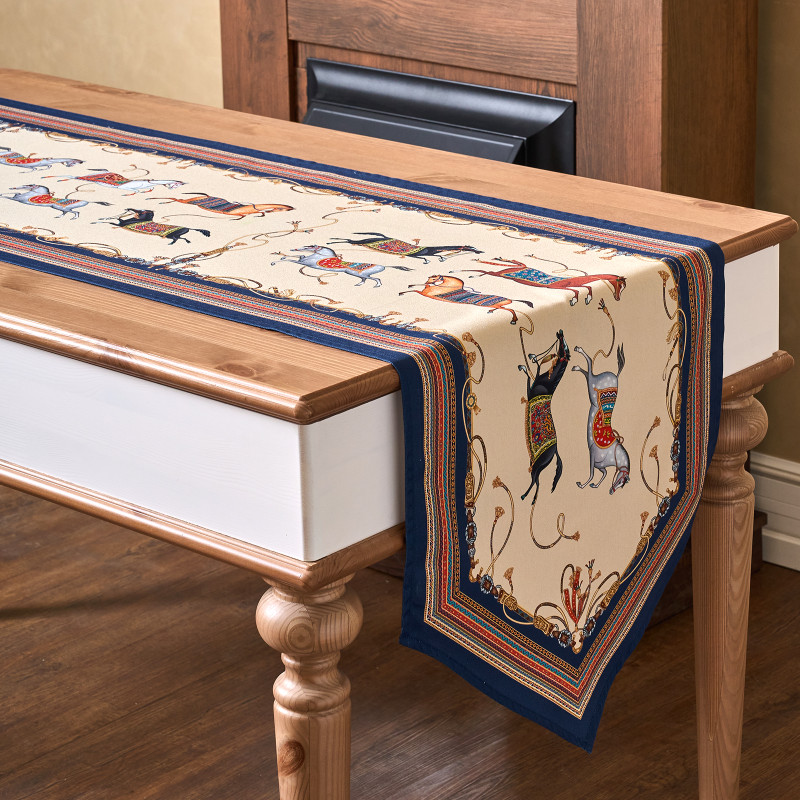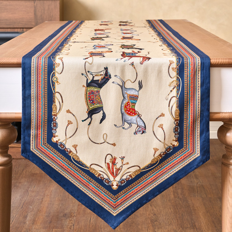 Хорошо комбинируется с однотонными скатертями. Подходит для дома, дачи, загородного коттеджа. Размер 45×215 см идеально подойдёт для прямоугольных и овальных столов, позволяя создать аккуратный и завершённый образ сервировки.