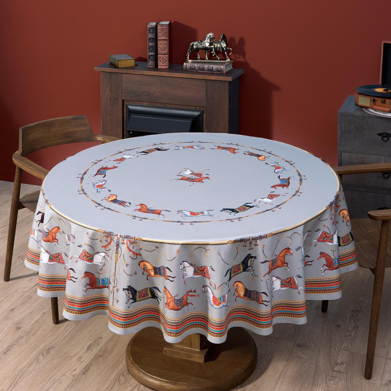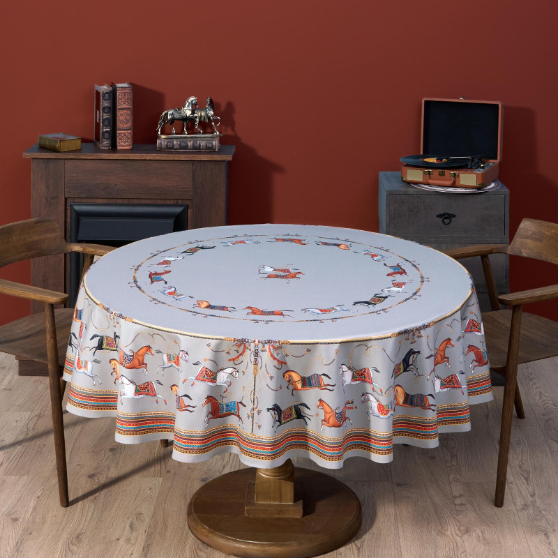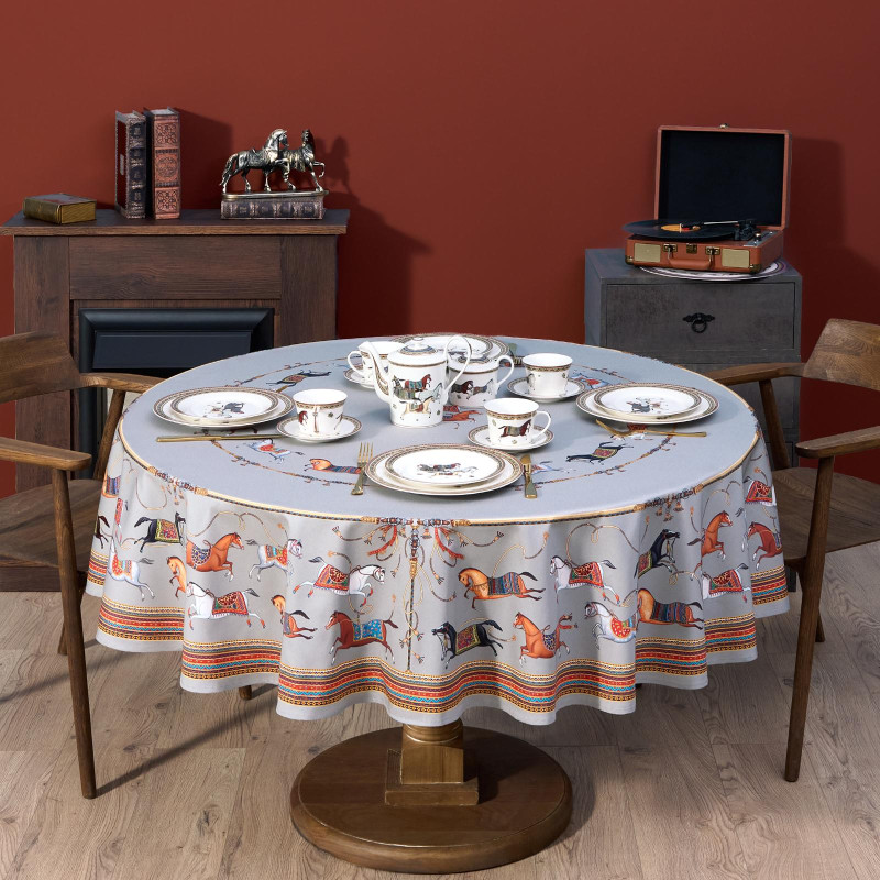 Скатерть круглая "PASSAGE" ,d190см, 100% хлопок,твил c пропиткой, серый LEFARD 850-761-25