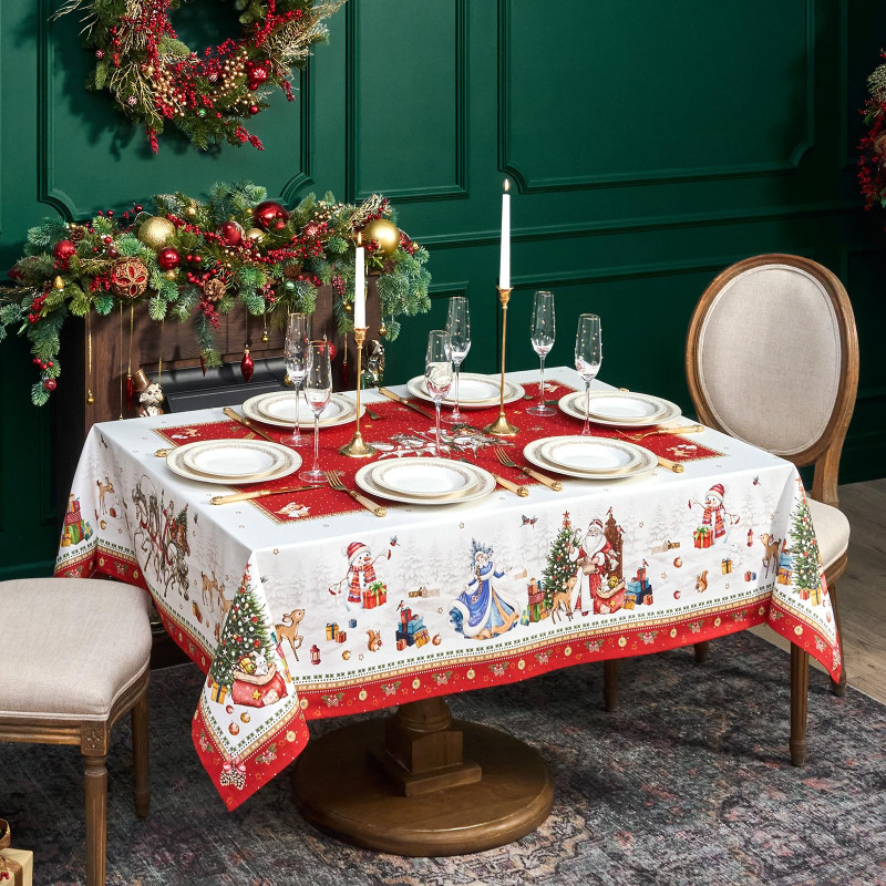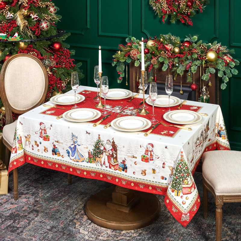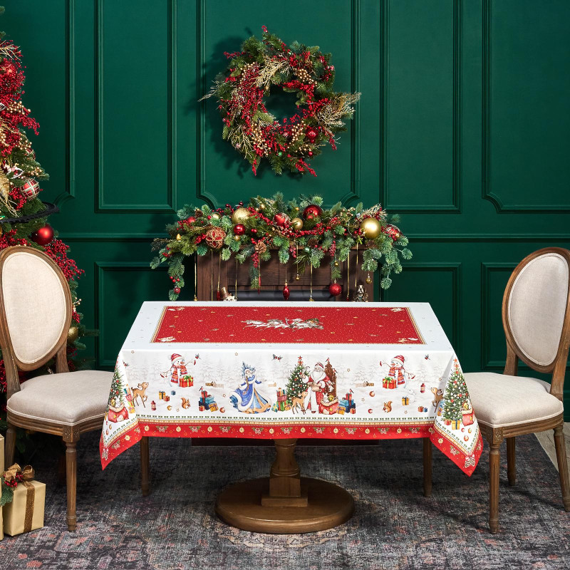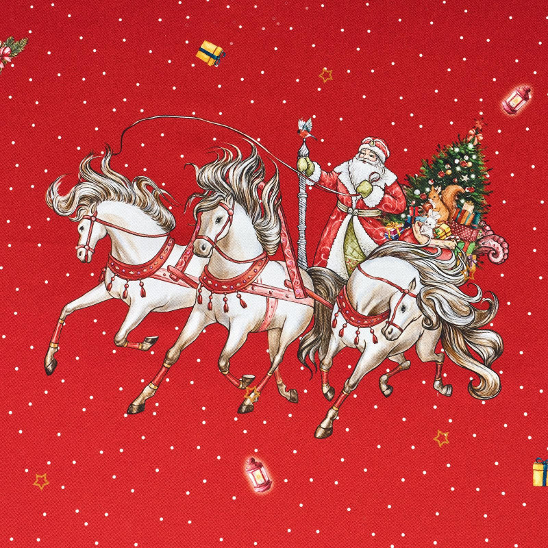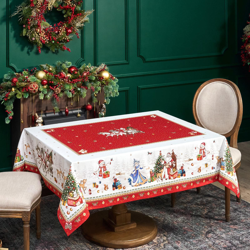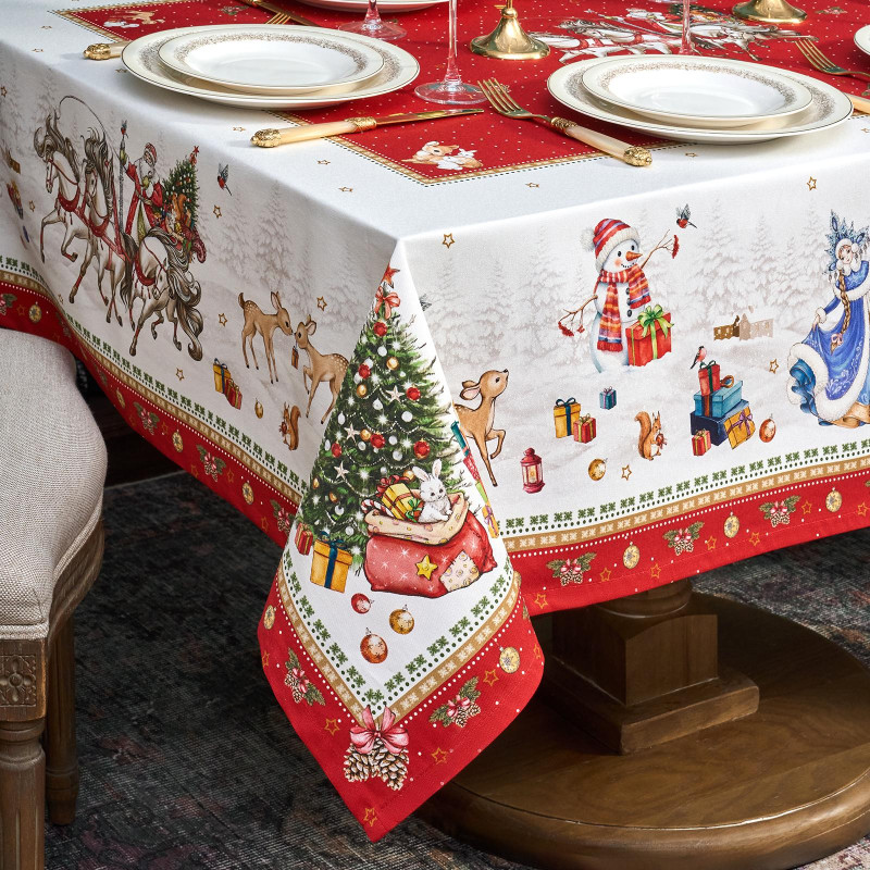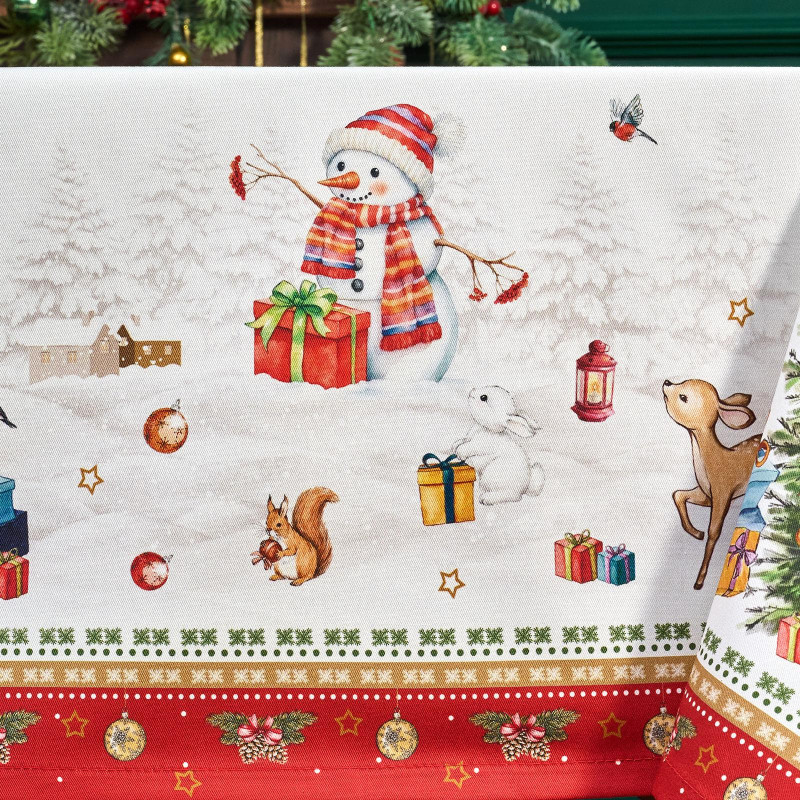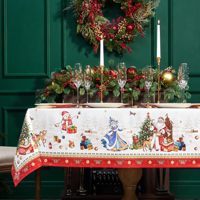 Она выполнена из высококачественного 100% хлопка с саржевым переплетением Твил. Эта ткань не заламывается и не мнется. Скатерть из твила выглядит аккуратно и элегантно и имеет плотность 190 гм2. Такая плотность ткани позволяет стирать скатерть, гладить и сушить более 100 раз без потери качества. Скатерть имеет дополнительную водоотталкивающую пропитку, которая защитит её от разлитой жидкости. Цифровая печать принта выполнена по всем сторонам скатерти и с любой стороны будет выглядеть красиво и четко, каждый штрих детально прорисован во всём многообразии оттенков. Коллекция "С Новым Годом" имеет яркий красивый новогодний дизайн с зимним пейзажем леса и яркими снегирями на ветках рябины. Он подойдет для празднования Нового года 2026 , Рождества и декора, а специальная пропитка избавит вас от хлопот с отстированием пятен после застолья.