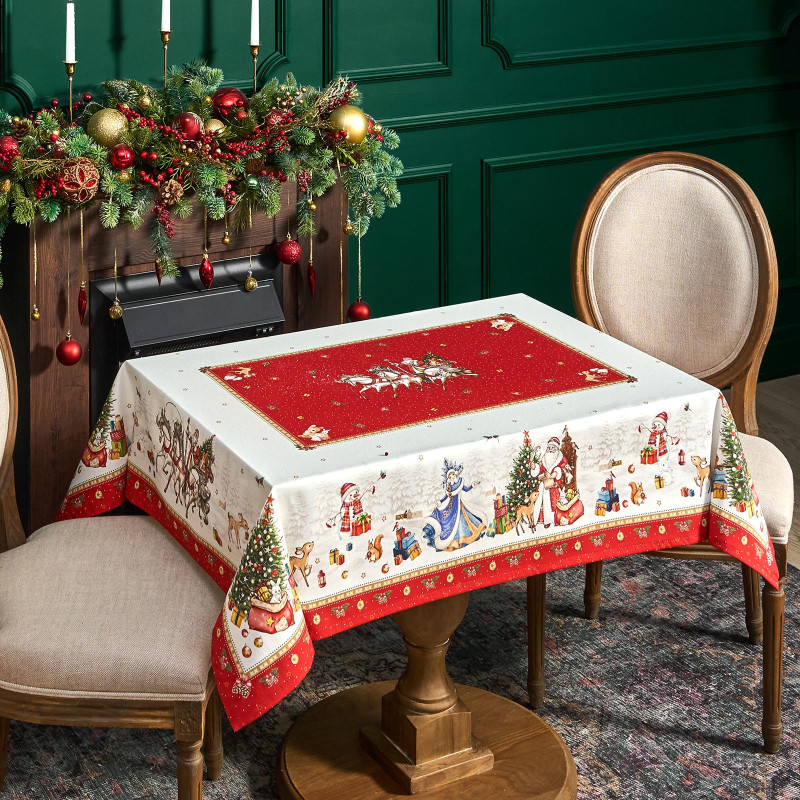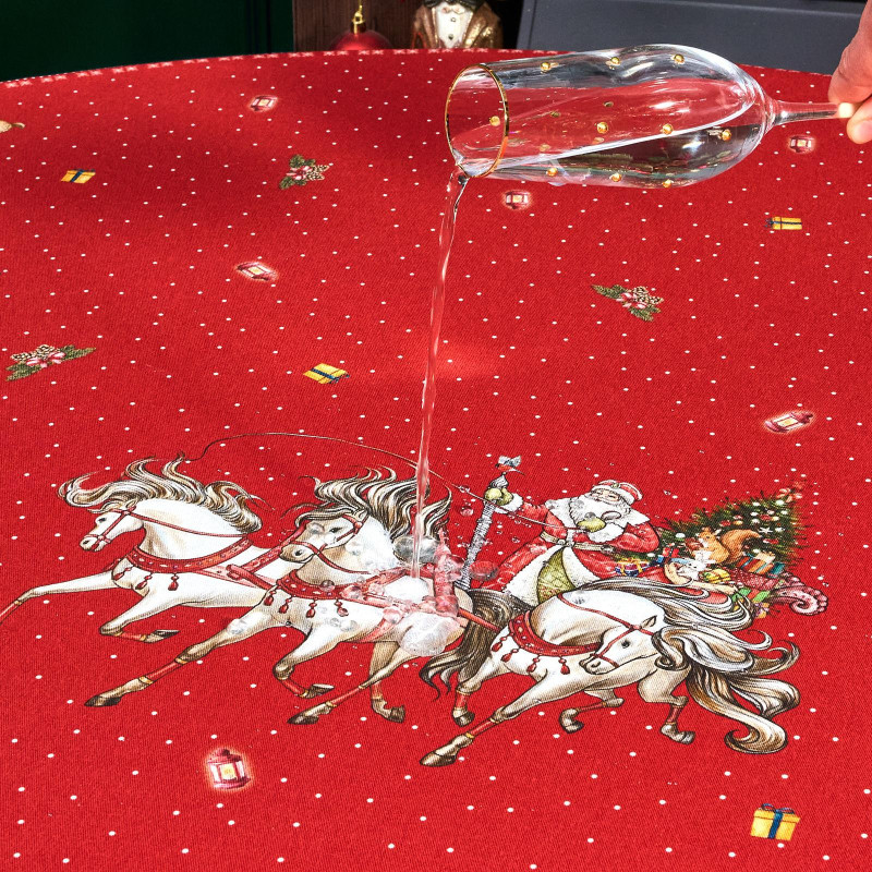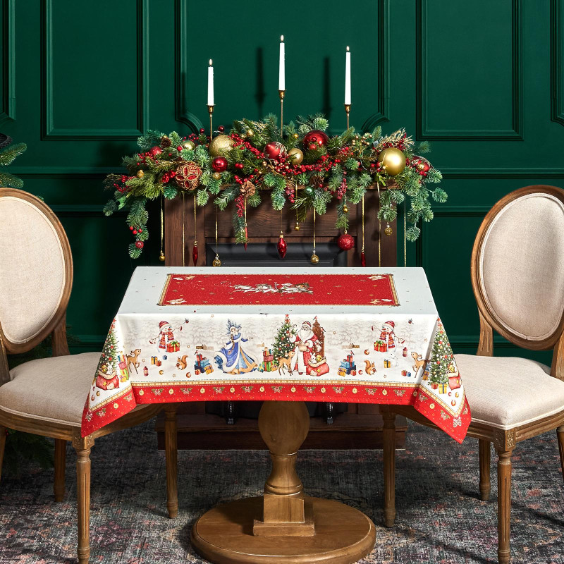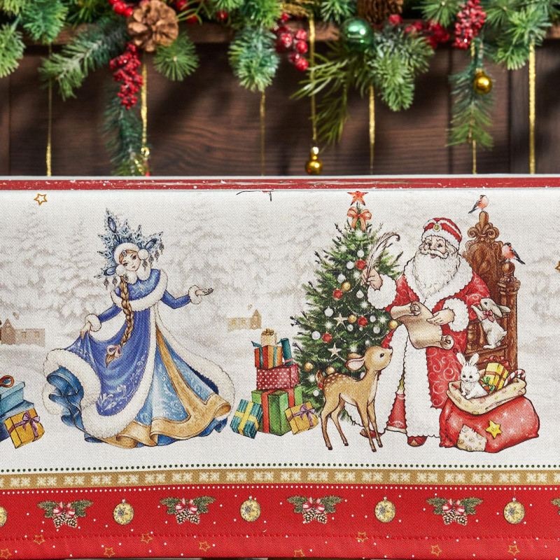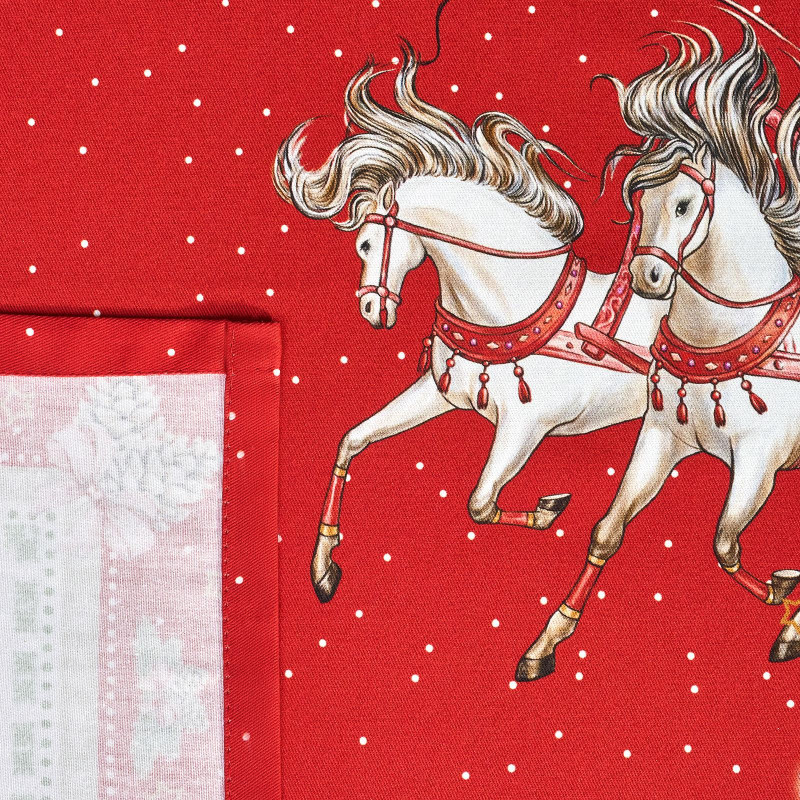 Она выполнена из высококачественного 100% хлопка с саржевым переплетением Твил. Эта ткань не заламывается и не мнется. Скатерть из твила выглядит аккуратно и элегантно и имеет плотность 190 гм2. Такая плотность ткани позволяет стирать скатерть, гладить и сушить более 100 раз без потери качества. Скатерть имеет дополнительную водоотталкивающую пропитку, которая защитит её от разлитой жидкости. Цифровая печать принта выполнена по всем сторонам скатерти и с любой стороны будет выглядеть красиво и четко, каждый штрих детально прорисован во всём многообразии оттенков. Он подойдет для празднования Нового года 2026 и Рождества и декора, а специальная пропитка избавит вас от хлопот с отстированием пятен после застолья.