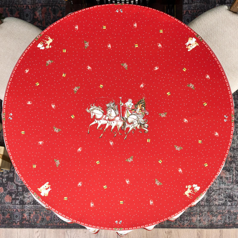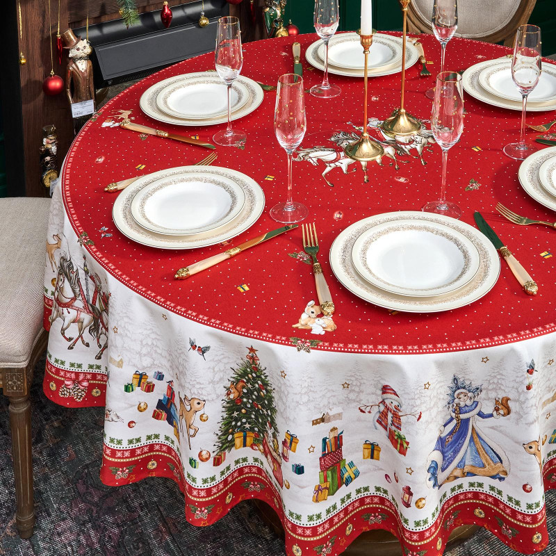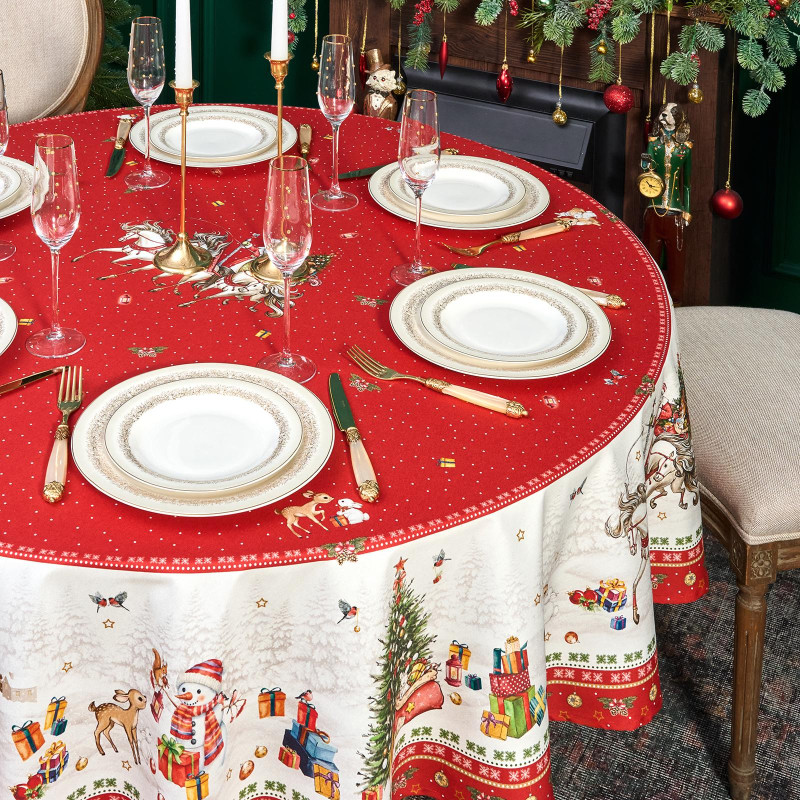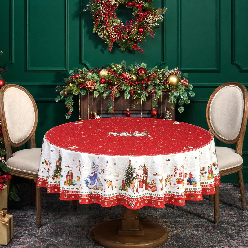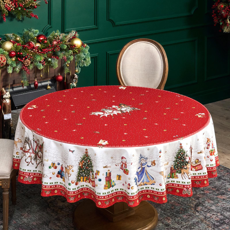 Новогодняя, скатерть на круглый стол из коллекции С Новым Годом от бренда Lefard — стильное и практичное решение для кухни, гостиной или праздничного интерьера. Изготовлена из 100% хлопка с водоотталкивающей пропиткой: ткань защищает поверхность от влаги и загрязнений, легко очищается и быстро сохнет.