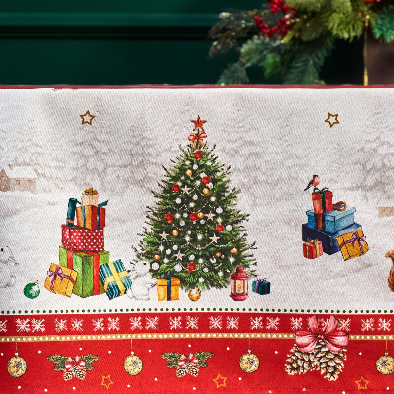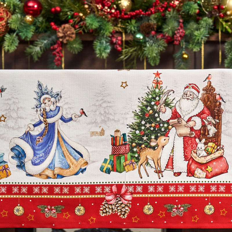 Новогодняя скатерть Lefard из коллекции С Новым Годом — идеальный акцент для сервировки большого праздничного стола. Яркий праздничный узор с еловыми ветками, игрушками наполняет интерьер атмосферой настоящего рождественского чуда. Этот сказочный герой — символ волшебства, домашнего тепла и защиты. Такой текстиль не просто украшает стол, а создаёт ощущение уюта и предвкушения праздника, где каждый гость почувствует себя желанным.