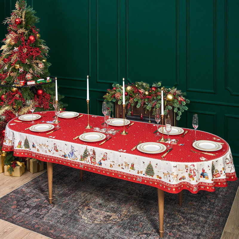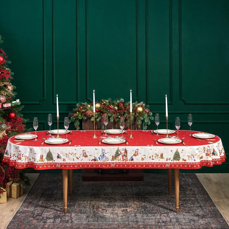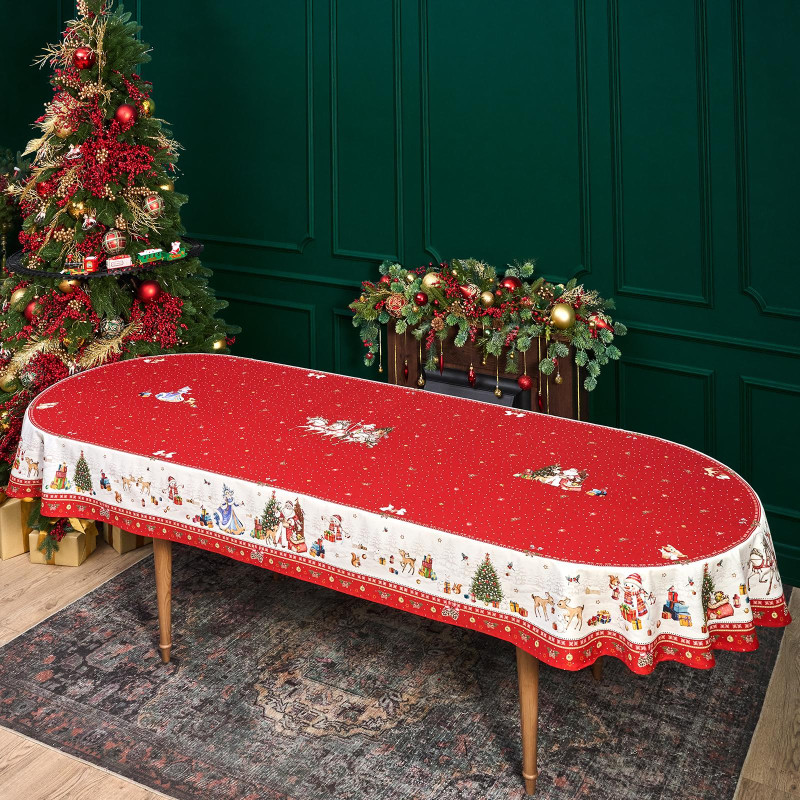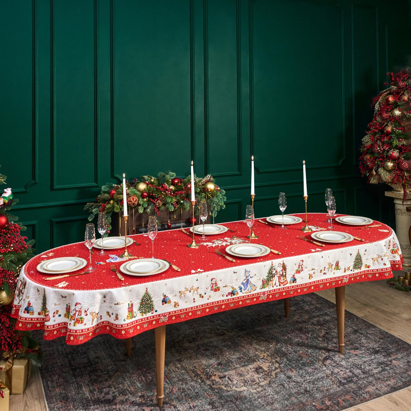 Благодаря размеру 140×300 см, скатерть идеально подходит для длинных прямоугольных и овальных столов длиной более 2, 5 метров. Это удачное решение, если вы ищете качественную скатерть 3 метра из плотной ткани с праздничным и выразительным дизайном.