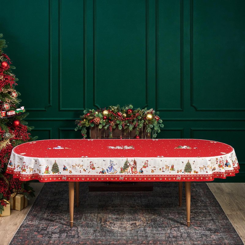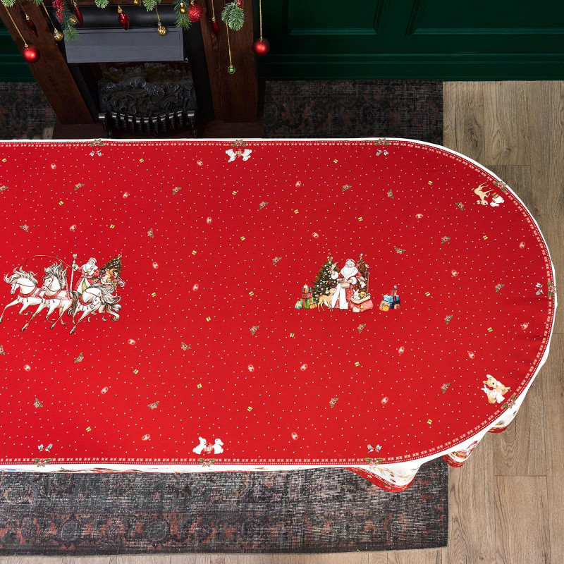 Скатерть овальная "С НОВЫМ ГОДОМ" 140х300см ,красный, 100% хлопок,твил пропитка LEFARD 850-763-42