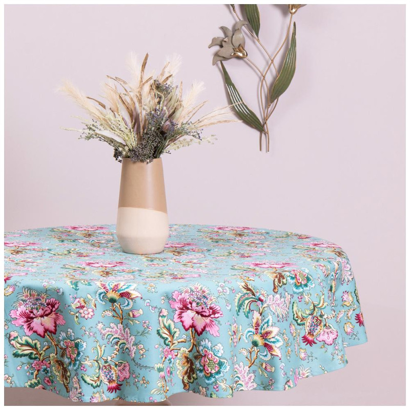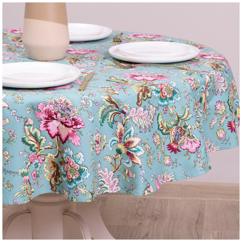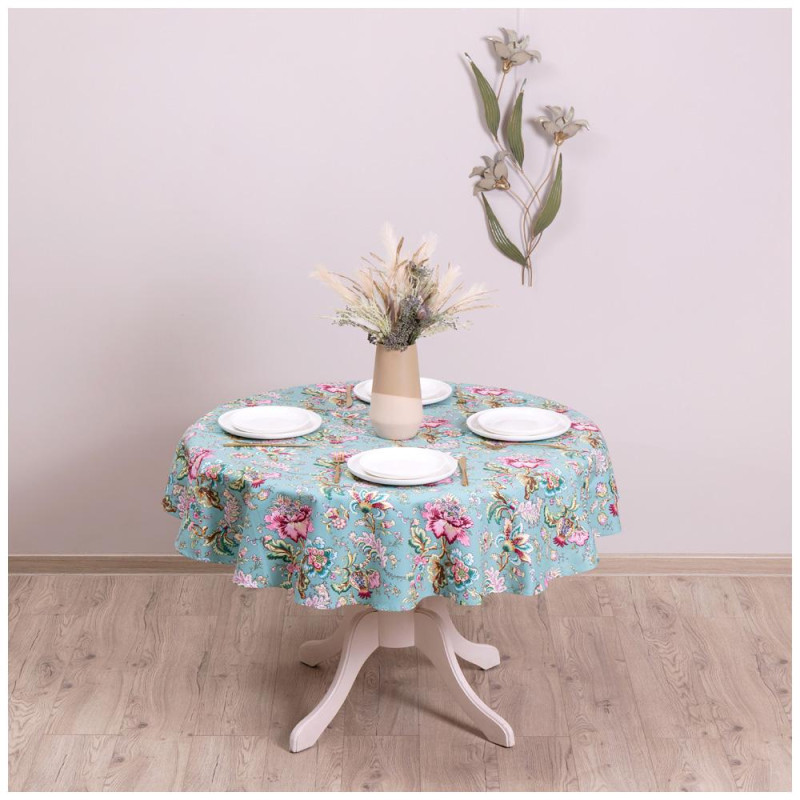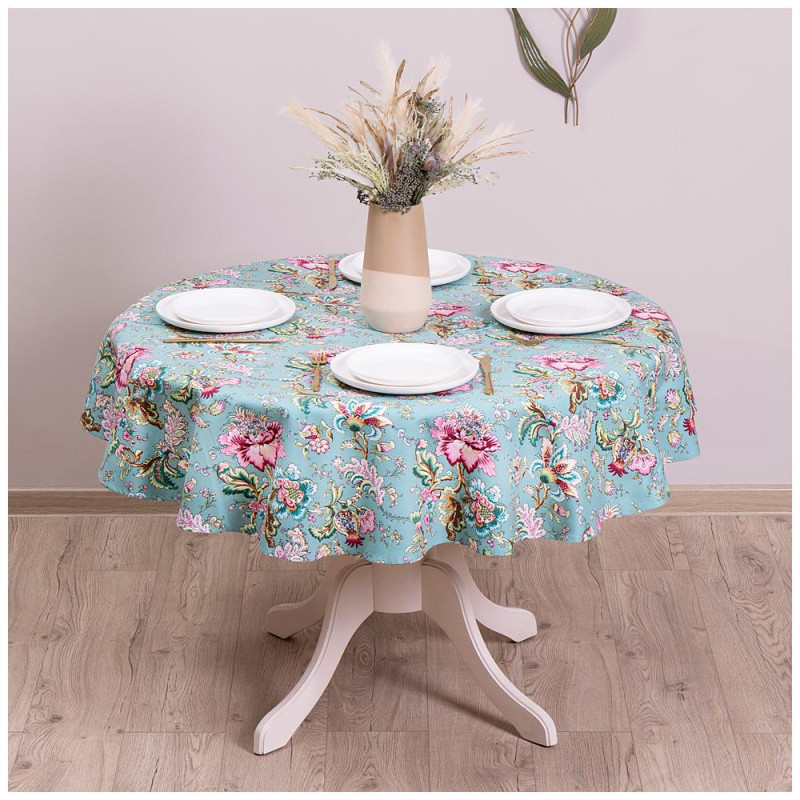 Скатерть круглая "РАЙСКИЙ САД" d145 см, 100% хлопок,бирюза, LEFARD 850-818-24
