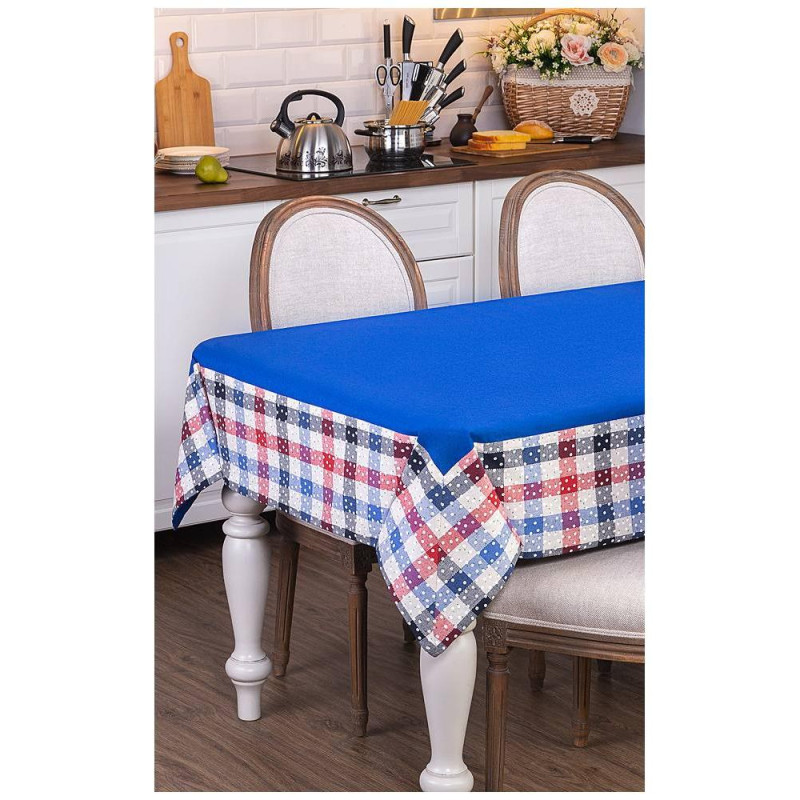 Скатерть " ИНДИГО" , 140х180см, 100% хлопок, синий+клетка, LEFARD 850-883-2