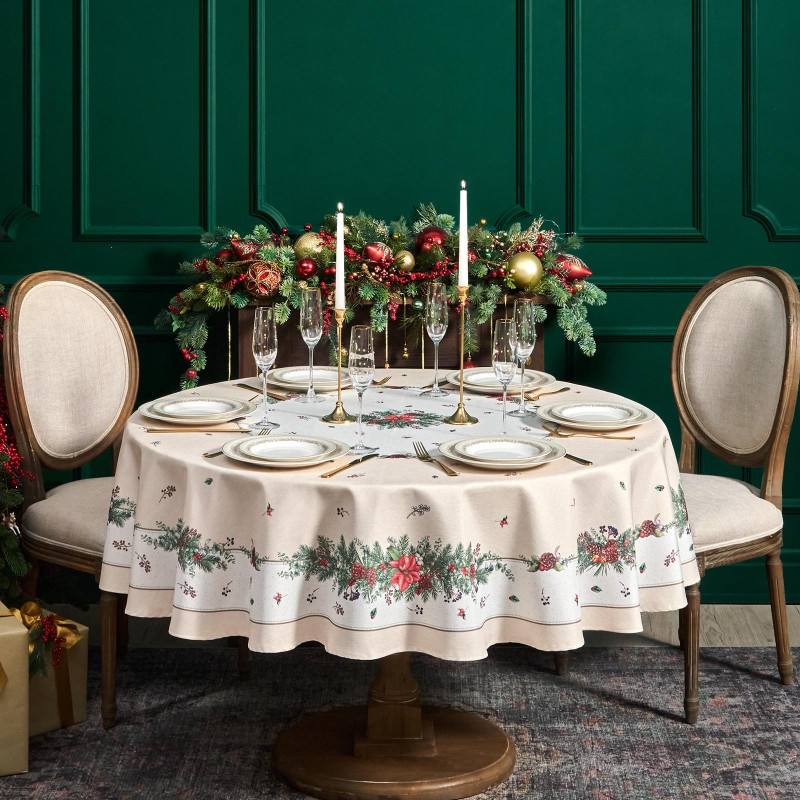Новогодняя скатерть Lefard из коллекции «Celebration» — элегантное украшение стола и изысканный акцент зимнего интерьера. Она создаёт атмосферу тепла и уюта, превращая семейный ужин в красивую семейную традицию.
