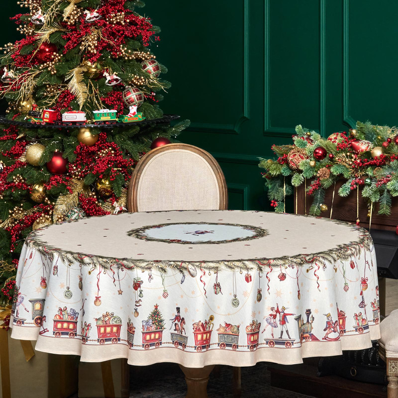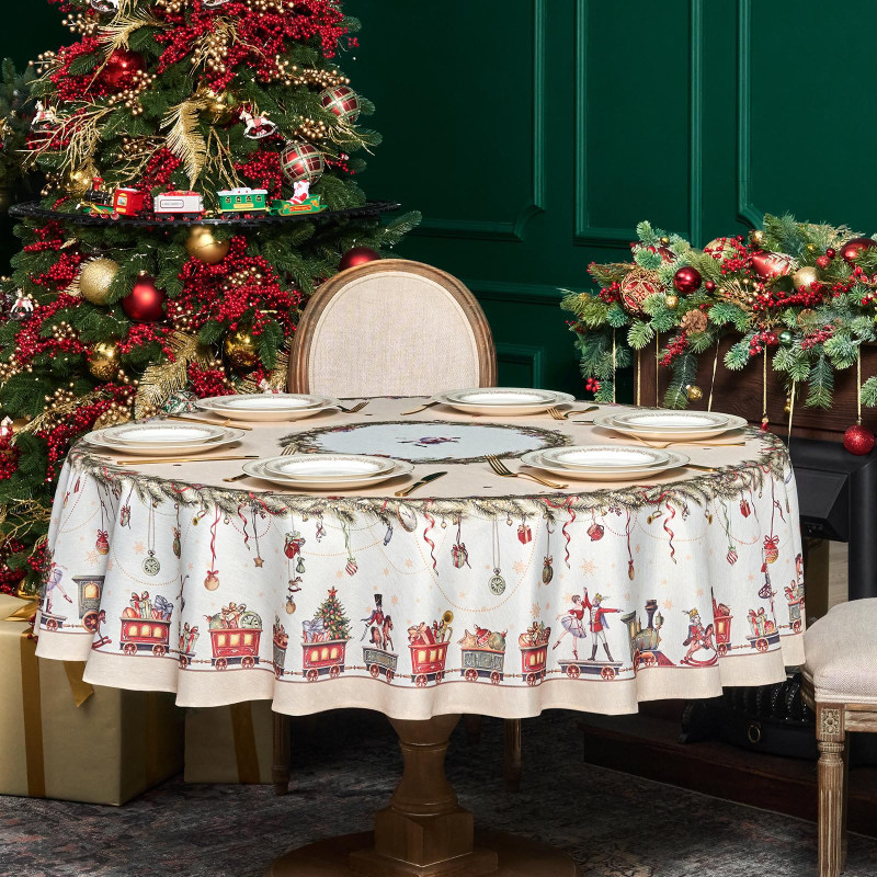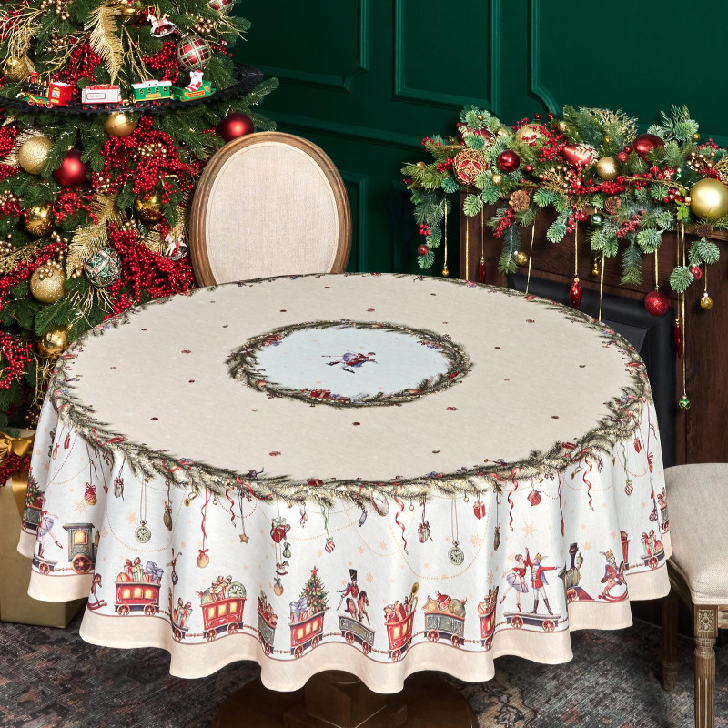 Новогодняя круглая скатерть Lefard из коллекции «Щелкунчик» — изысканное украшение для праздничного стола, которое создаёт атмосферу уюта и волшебства.