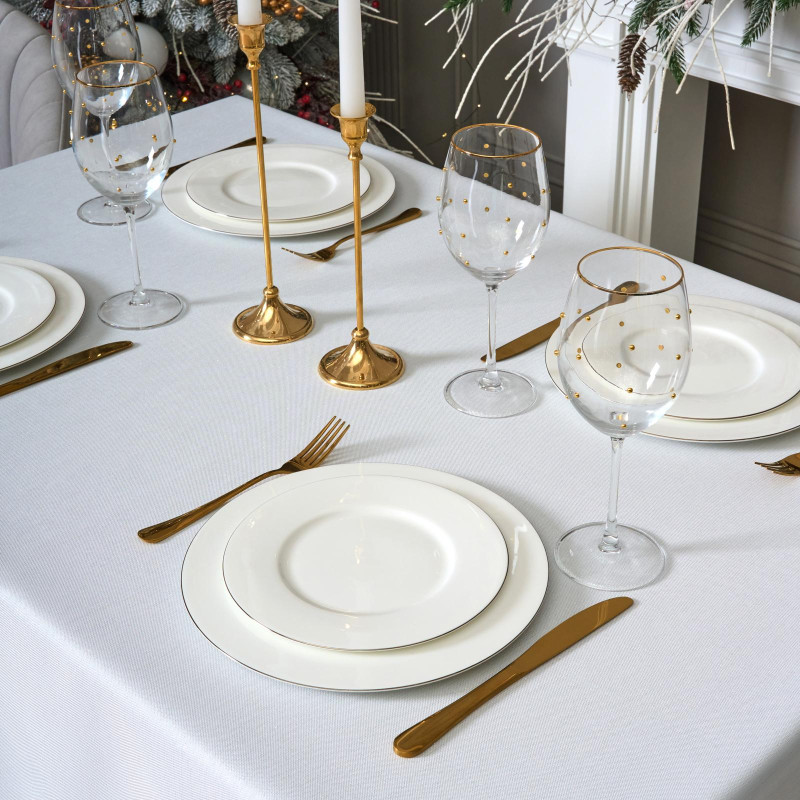 Благородный серебристый оттенок и мягкий блеск ткани создают атмосферу зимнего праздника. Однотонная текстура с добавлением люрекса красиво переливается при свете ламп и свечей, наполняя интерьер кухни, гостиной или столовой легкостью и изяществом. Скатерть гармонично сочетается с посудой и аксессуарами Lefard, создавая завершённую композицию новогоднего декора.