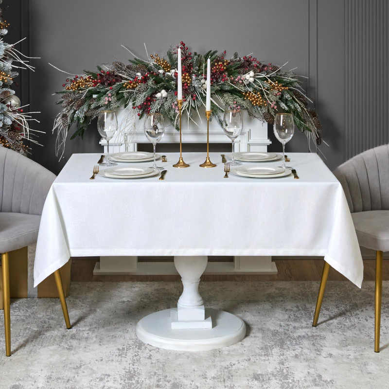 Красивая и практичная скатерть не только украшает интерьер, но и защищает поверхность стола от влаги и пятен. Подойдёт для Нового года, Рождества, юбилея или новоселья, станет отличным подарком для мамы, бабушки, подруги или коллеги. Большой размер 160×220 см позволяет использовать её для больших обеденных столов, подчёркивая атмосферу уюта .