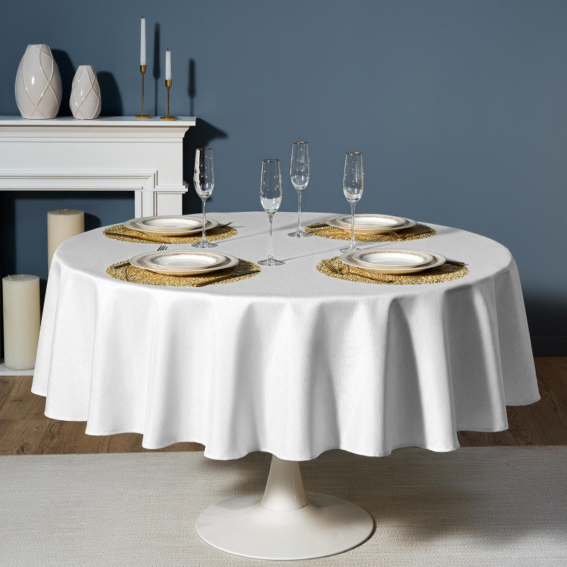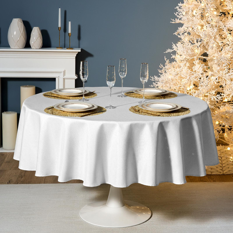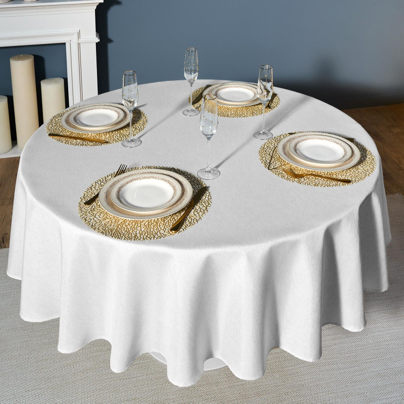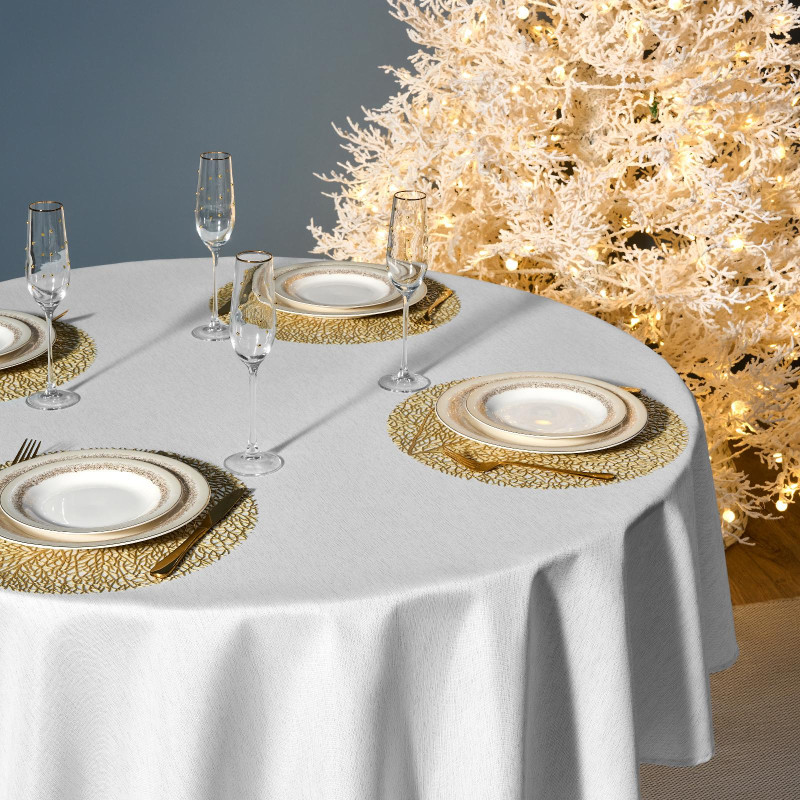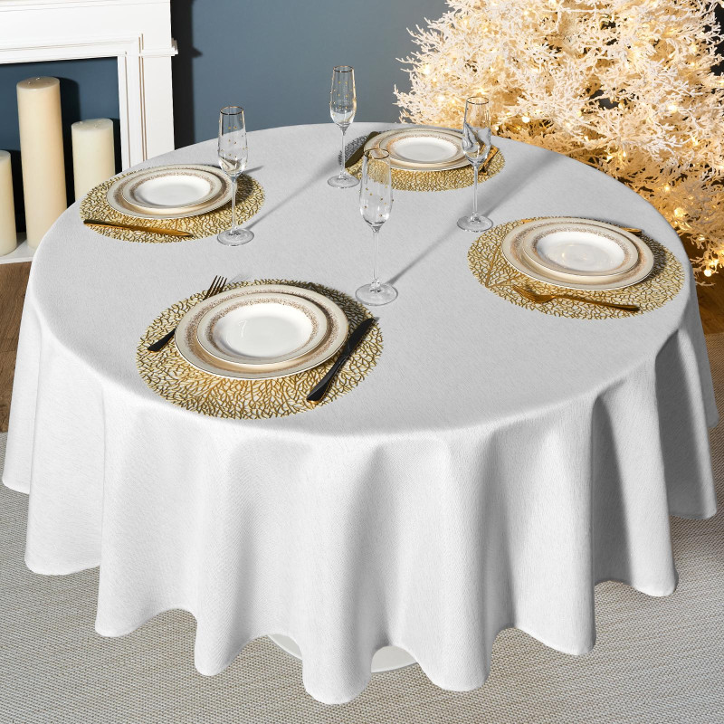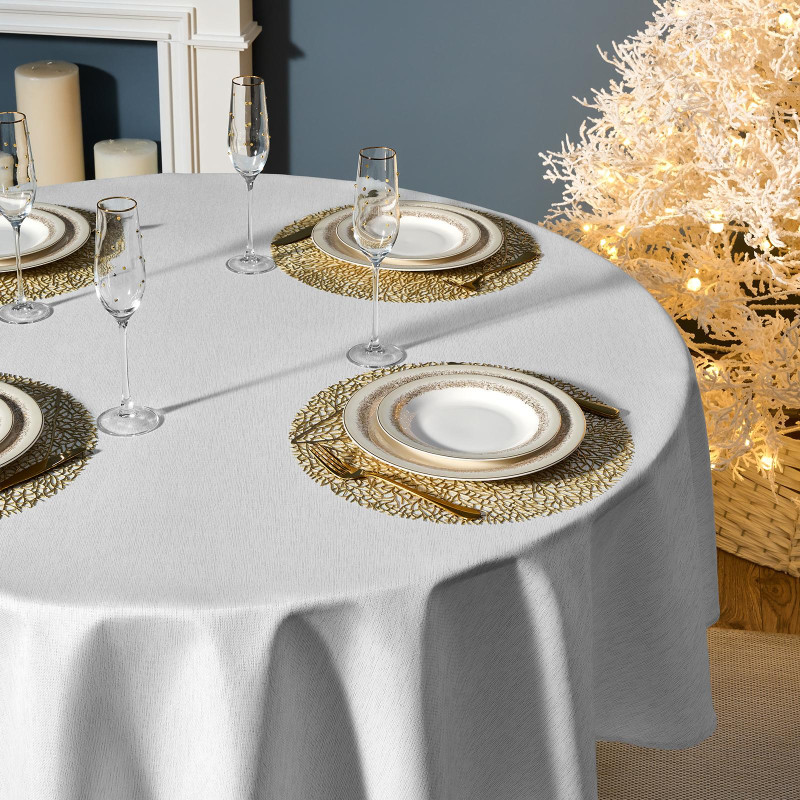 Скатерть d190 cm круглая, "ФЕЕРИЯ. СЕРЕБРО", цвет: белый, tm , полиэстер 100% (кор=22шт.) LEFARD 986-004-25