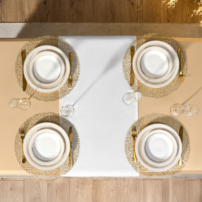 Хорошо комбинируется с однотонными скатертями, посудой в классическом или прованском стиле, текстилем в зимней палитре. Подходит для дома, дачи, загородного коттеджа. Размер 45×150 см идеально подойдёт для прямоугольных и овальных столов, позволяя создать аккуратный и завершённый образ сервировки.