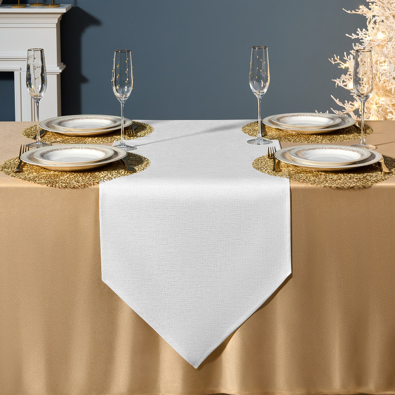 Хорошо комбинируется с однотонными скатертями, посудой в классическом или прованском стиле, текстилем в зимней палитре. Подходит для дома, дачи, загородного коттеджа. Размер 45×300 см идеально подойдёт для прямоугольных и овальных столов, позволяя создать аккуратный и завершённый образ сервировки.