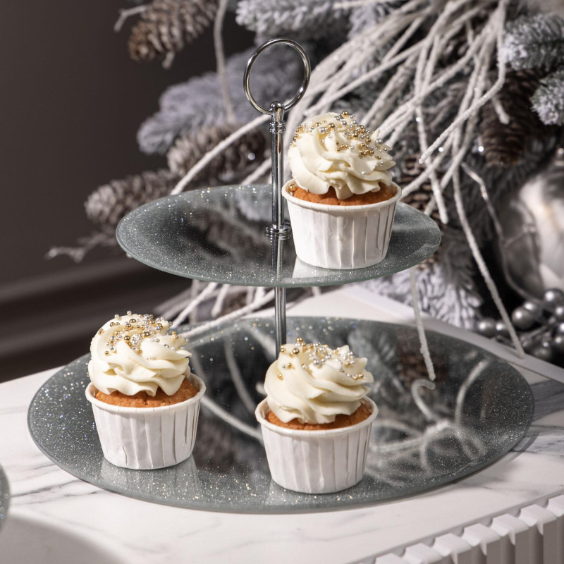 Блюдо сервировочное 2-х ярусное "SILVER MIRROR" 19/30 см AGNESS 357-253-1